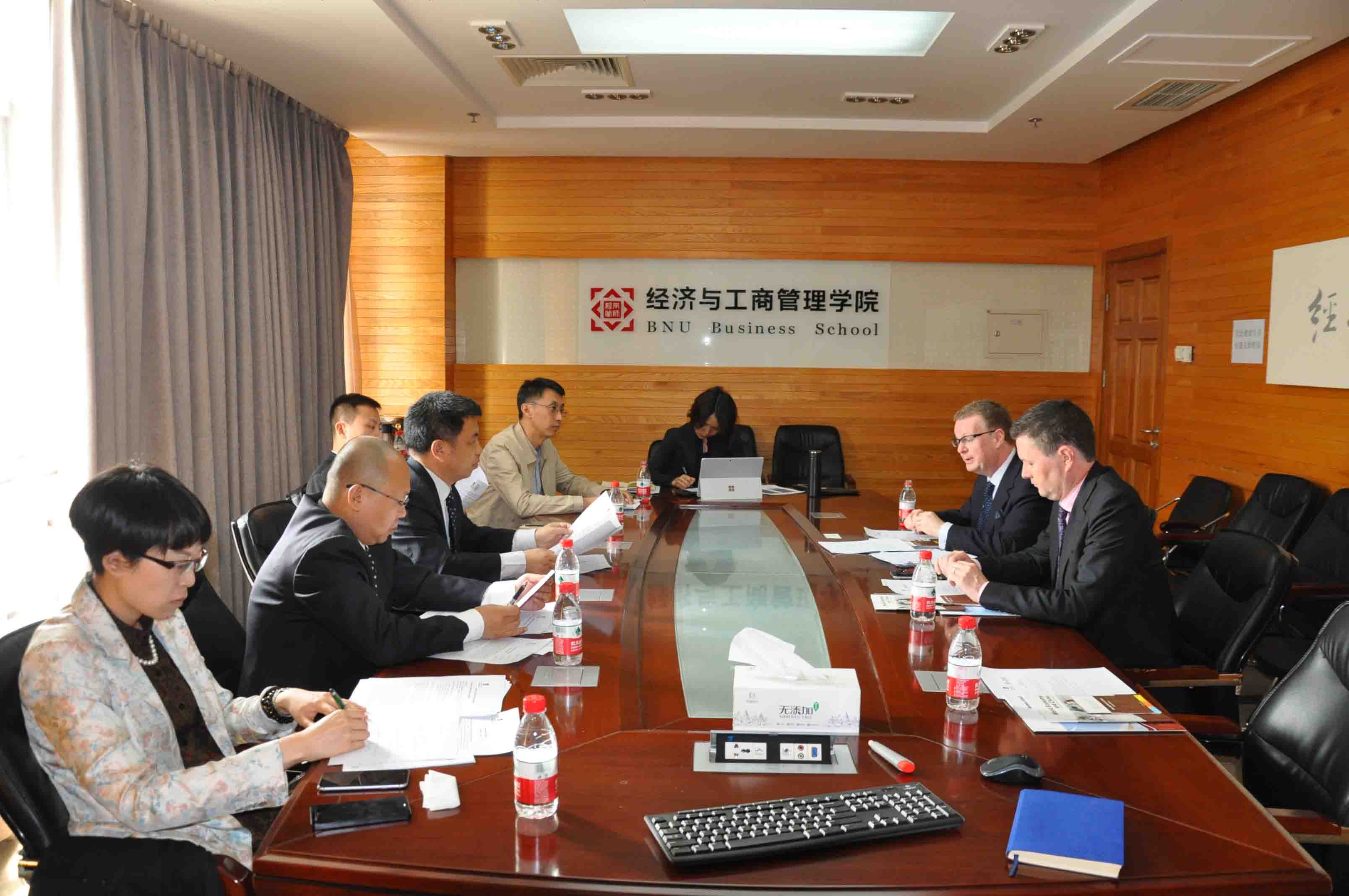 This is Prof. Lloyd’s first visit to BNU Business School, Dean Lai Desheng welcomed him warmly and invited Prof. Yang to give a general introduction of BNU Business School. This is South Australia University’s third visit to BNU Business School since this March, the main purpose of this meeting is to discuss the construction of a Business Confucius Institute in South Australia University, also to further implement mutual cooperation between both parties in aspects such as teaching and scientific research; including student and teacher exchange, a dual-degree program for undergraduates, master’s programs teacher and student communication, scientific research, collaborative academic meetings, also to establish a collaborative research center for innovation and entrepreneurship.