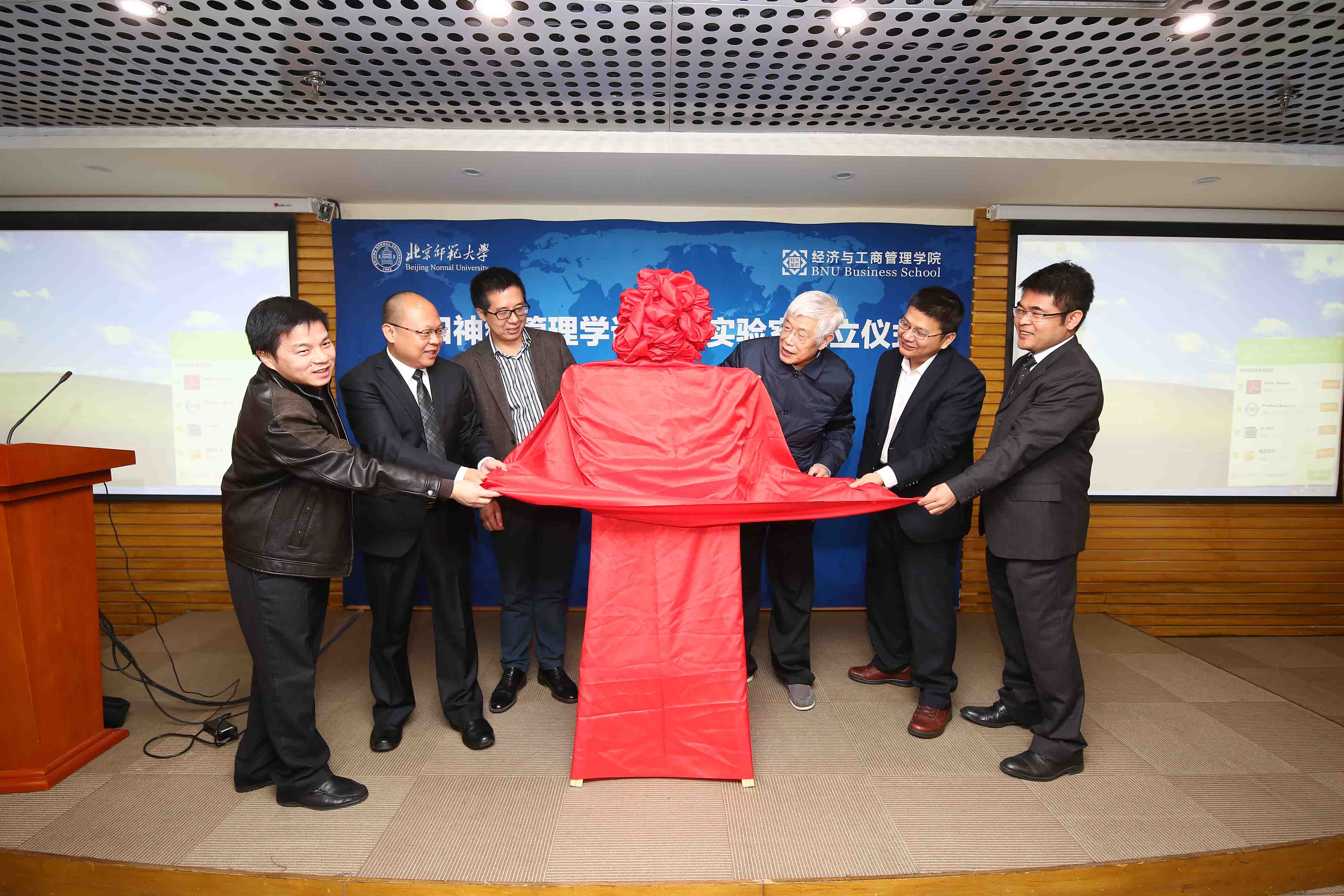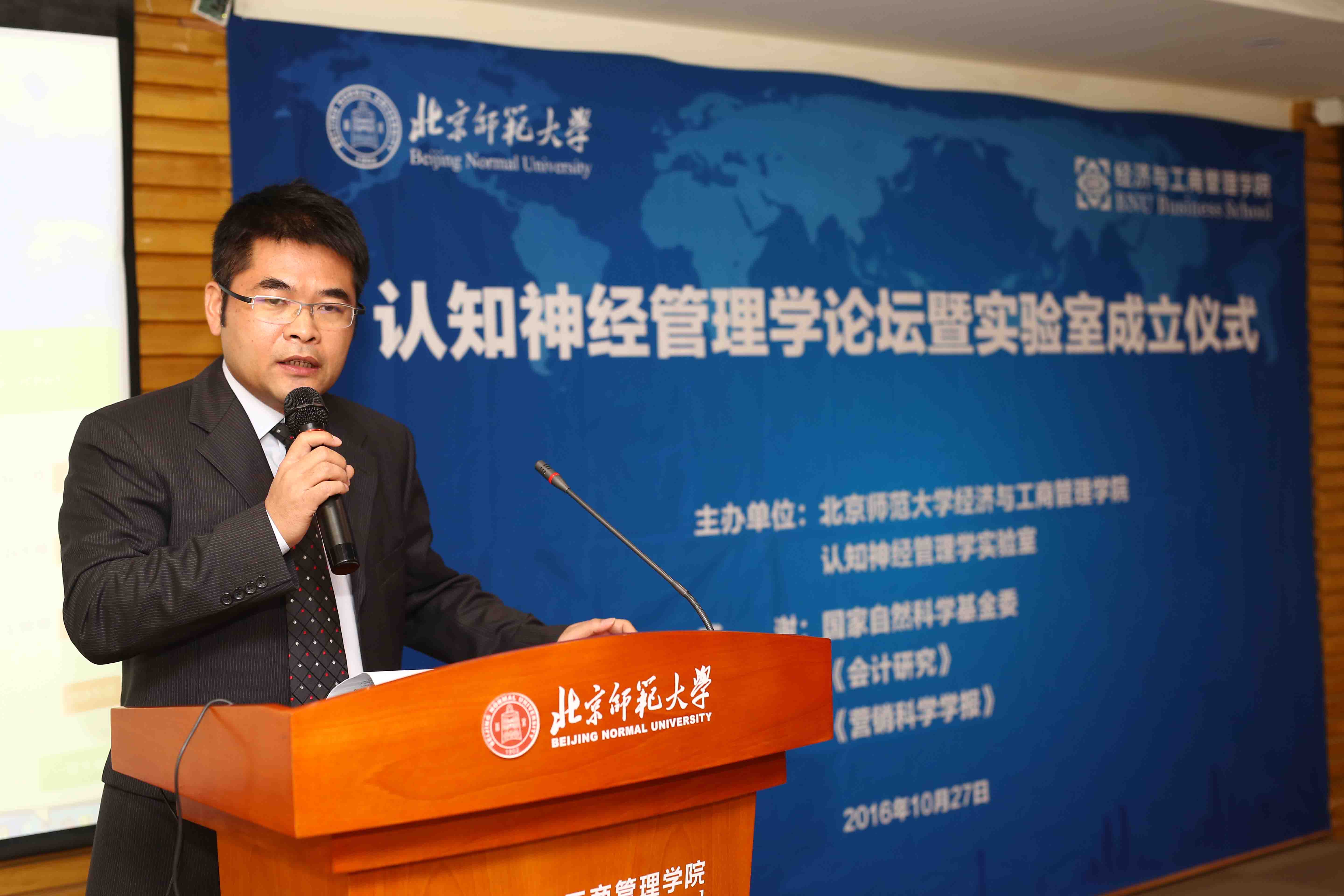 In the morning of October 20, 2016, the Cognitive Neuroscience Forum of BNU Business School and Laboratory Establishment Ceremony were successfully held in the Jingshi Building. Professor Ma Qingguo, Director of the Neuroscience Management Laboratory of Zhejiang University and Research Founder of the International Neuroscience Research Program, Meng Qingfeng, Director of the Policy Bureau of National Natural Science Foundation, Fu Guoqun, Director of the Marketing Research Society of Chinese Universities, Editor in Chief of “Journal of Marketing Science” and Professor of Peking University, Professor Liu Guoqiang, Director of the Editorial Department of “Accounting Research”, Professor Xue Gui, Director of the Brain and Learning Science Research Center of BNU, Professor Liu Chao, a researcher of State Key Laboratory of Cognitive Neuroscience and Learning at Beijing Normal University, Professor Zhang Pingdan, Vice Dean of BNUBS, Professor Cui Xuegang, Director of Cognitive Management Laboratory and associate professor Su Song, Vice Director of Cognitive Management Laboratory and director of Marketing Department attended the forum and the laboratory establishment ceremony. The forum also attracted more than 100 teachers, doctors and masters from Nanjing University of Posts and Telecommunications, Research Group on Military Decision - making of the Ministry of Aerospace, Beijing Institute of Beijing Water Conservancy and Design Institute, BNUBS, School of Psychology of BNU and School of Brain and Cognition of BNU.