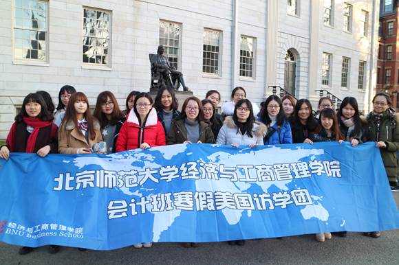 From January 16 to January 25, 2017, 19 Grade 2014 undergraduate students majoring in accounting from BNU Business School went to the cities of New York, Boston and New Haven for exchange and communication. The purpose of this event which is an important part for students majoring in accounting is to provide students with opportunities to broaden their horizon and experience foreign teaching methods. It is also a beneficial exploration for Sun Education Fund, BNUBS and students to raise funds together.