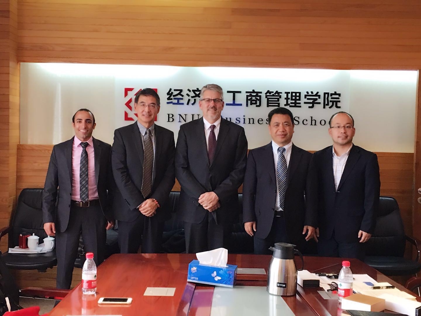 On 11th October 2017, Dean of Business School from Montclair State University, Greg Cant; Executive director of International Project, prof. Chen Qiyang; Deputy director of International Project, prof. Mostafa Omara visited BNUBS. Dean of BNUBS, prof. Lai Desheng, Assistant to the Dean, Mr. Cai Hongbo, and Ms. Shang Yihong from BNUBS Office of International Exchange and Cooperation received the guests.