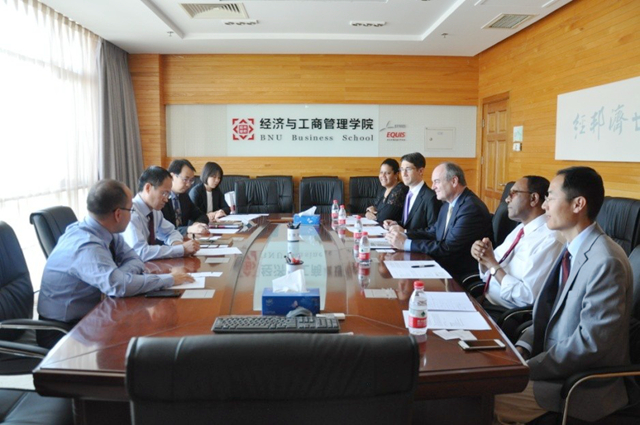Secretary Sun welcomed the delegation's visit. Cai Hongbo introduced to the guests the history, discipline composition, scientific research advantages, as well as the network and focus of international exchanges of our School. Professor Hanson firstly introduced Berhanu Abegaz, dean of the Department of Economics of WM, Daniel Maliniak, assistant professor of the Department of Government of WM, Dr. Dania Matos, director of the Diversity Office of the Department of Government of WM, and professor Wang Deliang, associate professor of the School of Foreign Languages at Beijing Normal University and director of the Confucius institute at the College of William and Mary. After that, Professor Hanson briefly introduced the basic situation of William and Mary College, and expressed his willingness to cooperate with our school in scientific research, degree programs, student exchanges and other aspects.