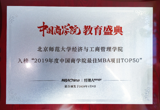 MBA Program of BNUBS Listed as "Top 50 MBA Program in China 2019"
