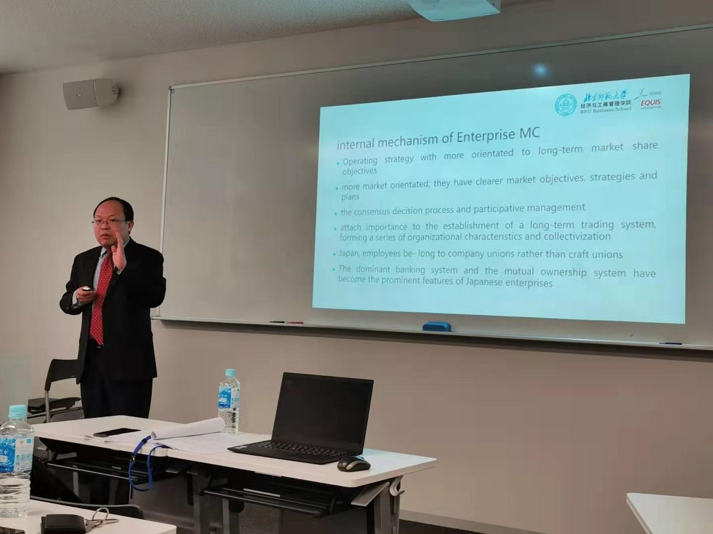 At the beginning of the meeting, professor Hori, head of the Learners’ Group, and professor Cui Xuegang, associate dean of the School of Economics and Management of Beijing Normal University, delivered speeches respectively. In his speech, professor Hori extended his warm welcome to the faculty and students of the School of Economics and Management of Beijing Normal University and offered his sincere gratitude for their efforts in cooperation and support to J.F.Oberlin University. He also suggested that in the new era, the two institutes should further strengthen cooperation, conduct in-depth academic and practical research based on the practical problems of Sino-Japanese economy and enterprise management, and transform the research results into teaching content, so as to make greater contribution to the training of senior talents in line with the needs of Sino-Japanese economy and enterprise management. Professor Cui Xuegang expressed his appreciation to J.F.Oberlin University’s for their outstanding contribution to the New Year forum, reviewed the process of our cooperation since 1990s, pointed out that the establishment of the Tokyo J.F.Oberlin Center of School of Economics and Management of Beijing normal university last year marked a solid step in the exploration towards internationalization, which received worm welcome of teachers and students and high recognition from the school. This is also the first time for the School of Economics and Management of Beijing Normal University to hold a New Year's forum overseas. As the development of Sino-Japanese relations has entered a new stage, the forum has more special significance in the present age.