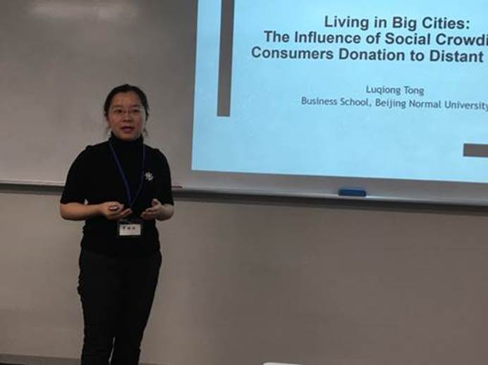 Associate professor Tong Luqiong reported "Living in Big Cities: the Influence of Social Crowding on Consumers Donation to Distant Places”. She pointed out that the distance between donors and donation activities had a greater impact on charitable behavior, and consumers tended to offer help to recipients who were closer to the them. She used an experimental approach to study the impact of social crowding on donation and the experimental results showed that the crowding degree significantly reduced the probability of the near donation and increased the probability of the long-distance donation. The study had important implications for understanding consumer’s prosocial behavior in the increasingly crowded environment of large cities. Future studies can further explore the mechanism of social crowding through field experiments.