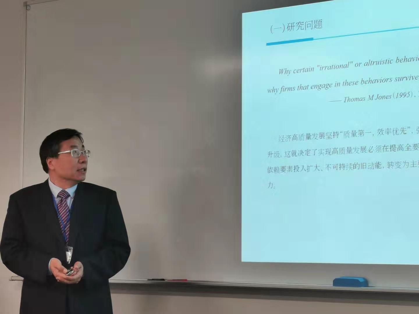 Professor Hu Haifeng brought his research on "Corporate Social Responsibility and Productivity”. He pointed out that by shouldering social responsibility, enterprises can improve the quality and efficiency of labor input, reduce financing constraints, and stimulate the ability to innovate, so as to improve their production efficiency. The analysis of the data of listed companies showed that taking social responsibility had a significant positive effect on the company's production efficiency, which was even larger in the industry with low competition, non-high-tech enterprises, non-state-owned enterprises and small-scale companies. Taking a further step to shoulder social responsibility is conducive to improving the efficiency of internal distribution, raising the salary of employees, reducing the income gap within the company, restricting the environmental financing, improving the innovation ability and thus improving the production efficiency.
