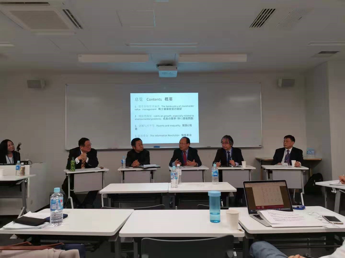 Then, the discussion section began. Under the chairmanship of professor Hirofumi Sakamoto, director of the institute of public welfare consortium legal person, the participants held a heated discussion on "corporate management in Japan and China during the transitional period”. The discussion covered the collapse of shareholder value management, the limits of growth, poverty and inequality, the information revolution, the succession of Japanese private enterprises, the complementary advantages of Chinese and Japanese enterprises, the research objectives of the management of Chinese and Japanese enterprises, and the direction of cooperation between the School of Economics and Management of Beijing Normal University and J.F.Oberlin University.