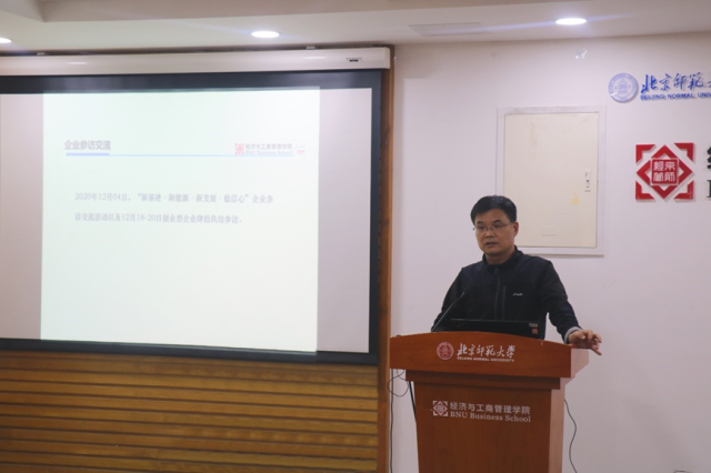 Ge Yuliang, Associate Secretary, introduced the work on students and alumni. In terms of student work, we would continue to cultivate and build the management brand by inheriting brand activities, innovating characteristic activities, optimizing publicity platform and creating image logo. Through Party and Youth League building, cultural and sports activities, and social practice, we would strengthen ideological guidance and the sense of responsibility. In the face of the COVID-19 pandemic, we have organized "four advances and four confidence", anti-epidemic column publicity, and volunteer teaching and post-epidemic care activities. With the joint efforts of all the teachers and students, we have achieved excellent results in all kinds of competitions in the school. In the future, we would continue to carry out our work with the attitude of scientific management, humanized activities, normalized system and humanized service. In terms of alumni work, we entertained two classes of alumni to return to school, held three alumni forums, interviewed four alumni, organized two alumni symposiums, and conducted two visits to enterprises. By doing these, we aimed to strengthen alumni exchanges, promote the spirit of BNUBS, and promote alumni development. In 2021, we would continue to hold the series of activities and lectures to make higher quality work.