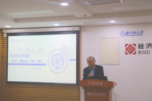 On the afternoon of March 10th, the general meeting of BNUBS in the new semester of 2021 was successfully held in Conference Room 9406, JINGSHI HOTEL. Dean Qi Yudong presided over the meeting.