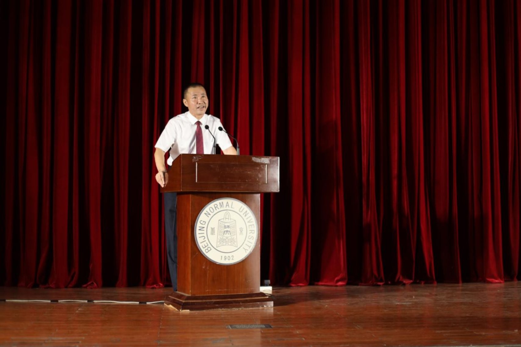 Yuan Yuan, the MBA freshman of 2021, spoke as the representative of the freshmen. She shared her understanding of the centennial cultural heritage of Beijing Normal University, expressed her confidence to be proactive and explore herself, and proposed that students jump out of the comfort zone and contribute their youth strength to national scientific and technological innovation and social progress.