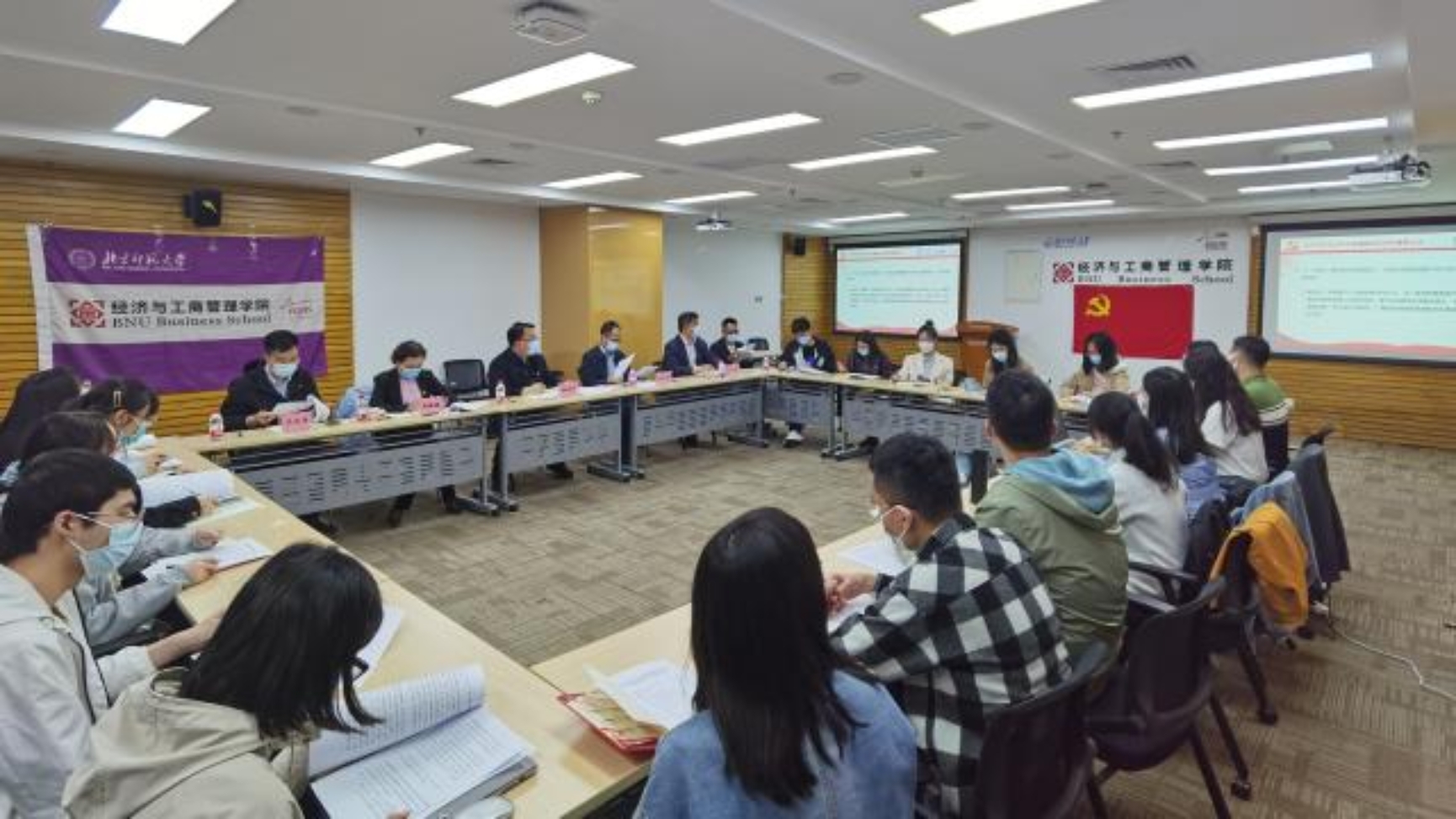 On the afternoon of April 27th, 2022, the Second Party Branch of Economics of BNUBS organized a topic-based learning activity. Cheng Jianping, Party Secretary of BNU, Sui Lulu, Minister of Student Affairs Department of theParty Committee of BNU, Li Jinzhong, Associate Director of the Organization Department of the Party Committee of BNU and Sun Zhijun, Party Secretary of BNUBS attended the activities. The activity was presided over by Guo Rui, Secretary of the second Party Branch.