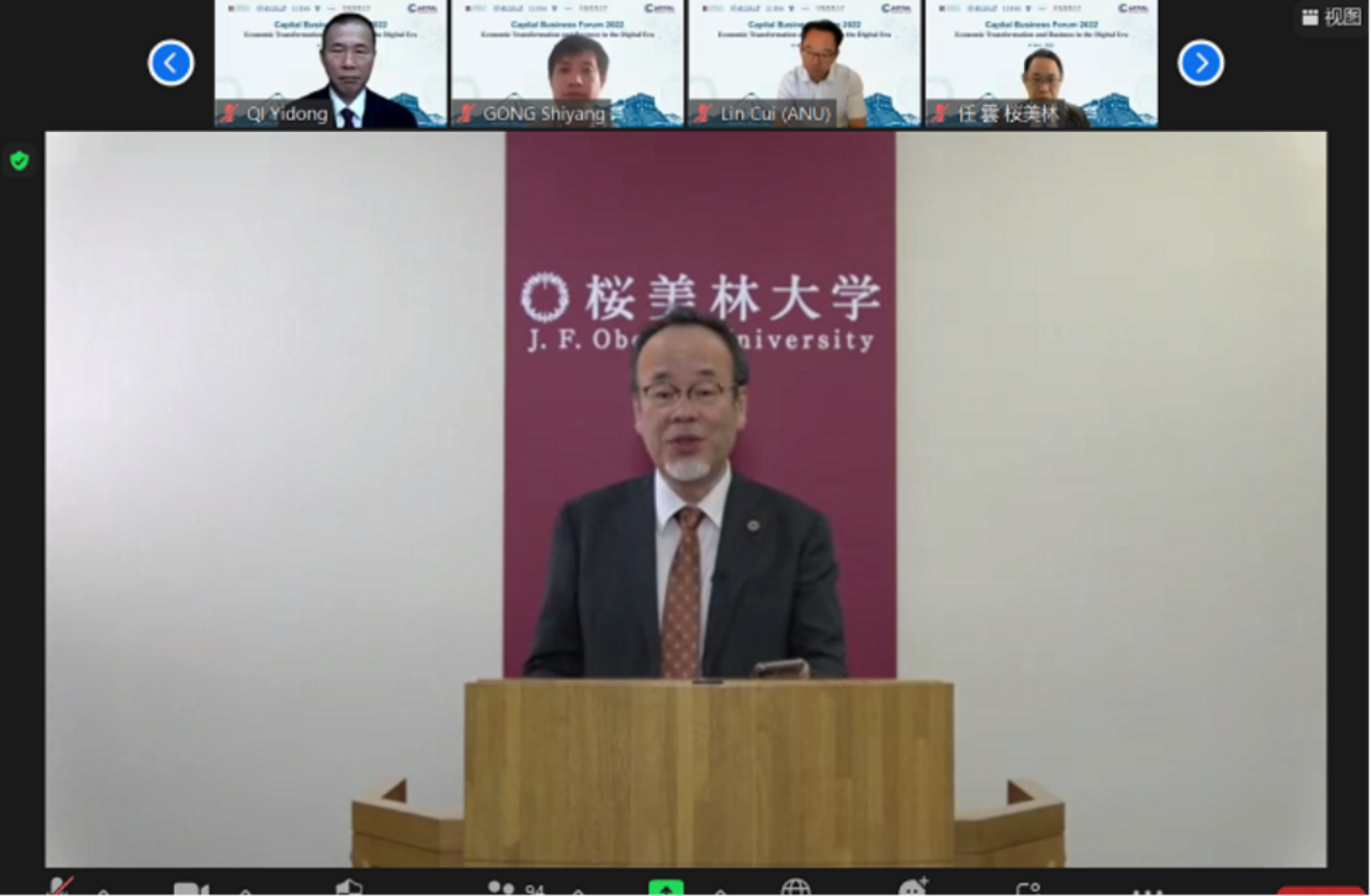 Hiroaki Hatayama, President of J.F. Oberlin University, delivered the first speech. He said that J.F. Oberlin University has a long history of exchanges and cooperation with Beijing Normal University, and BNUBS has set up an overseas teaching and research base on the J.F. Oberlin campus. J.F. Oberlin University is honored to host the 6th Capital Economic Forum this year. As the world is undergoing complex and drastic changes, it is timely and necessary for scholars in the capital to discuss the economic transformation and the development of enterprises in the digital era. The University is committed to working with other universities in the world to promote the development of economic globalization. President Hatayama finally wished the Capital Economic Forum a complete success.