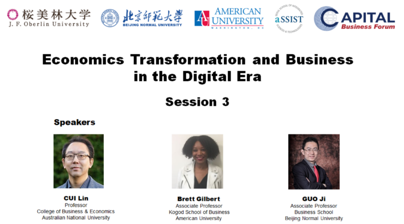 The second stage of the speech in the afternoon was hosted by Associate Professor Hu Conghui from BNUBS. Professor Lin CUI focuses on "Employee Ownership and Firm Digital Transformation: Evidence from China ", analyzes that the increase in the proportion of employee ownership in Chinese enterprises leads to a higher degree of digitalization of enterprises, and gives corresponding policy suggestions. Associate Professor Brett Gilbert will speak on "Firm Heterogeneity and Inequality: Based on A Regional Perspective, she analyzed the different degrees of compensation and employment strategies adopted by enterprises, which affected the degree of heterogeneity and inequality. Associate Professor Guo Ji titled "Digital Museum of the Economics and Social History of China" introduces the students can have video and rich electronic resources access to huge amounts of knowledge. The construction of digital museum is of great significance to the improvement of teaching and social progress.