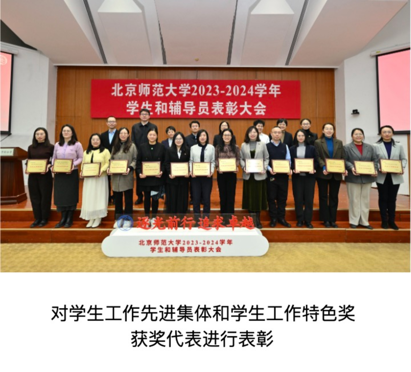 The conference announced the recognition decisions and winners of various awards. In the awards competition for advanced teacher collectives and individuals, BNUBS was awarded the titles of "Advanced Collective in Student Work" and "Red Flag Youth League Committee" for the 2023-2024 academic year. Han Lili, Associate Secretary of the Party Committee of our School, won the "Exemplary Individual in Student Work" and "Exemplary Individual in Recruitment Work" in the 2023-2024 academic year, Chang Xinyang, Secretary of the Youth League Committee of our School, won the "Excellent Secretary of Youth League Committee", Gao Jingjing won the "Excellent Contact Person in Recruitment Work", and 11 teachers, Wang Wei, Wang Xue, Wang Lulu, Kong Haiyang, Zhu Mengbing, Li Ran, Zhang Huili, Zhang Huilin, Chen Chaofan, Gong Shiyang and Kang Haoran, won the "Excellent Counselors".