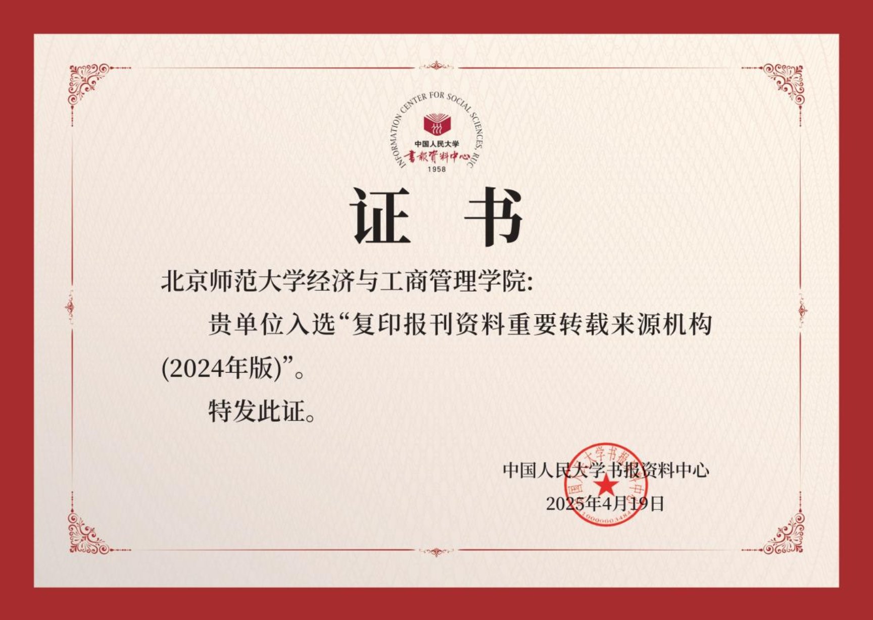 Recently, the Book and Newspaper Materials Center of Renmin University of China released the "Important Reprint Source Institutions of Reproduced Newspapers and Periodicals Materials (2024 Edition)". Our School successfully made it onto this list, thanks to its fruitful academic achievements from 2021 to 2023. A total of 307 institutions affiliated with institutions of higher education were selected, among which ten departments and institutions of Beijing Normal University were included, and our School was one of them.