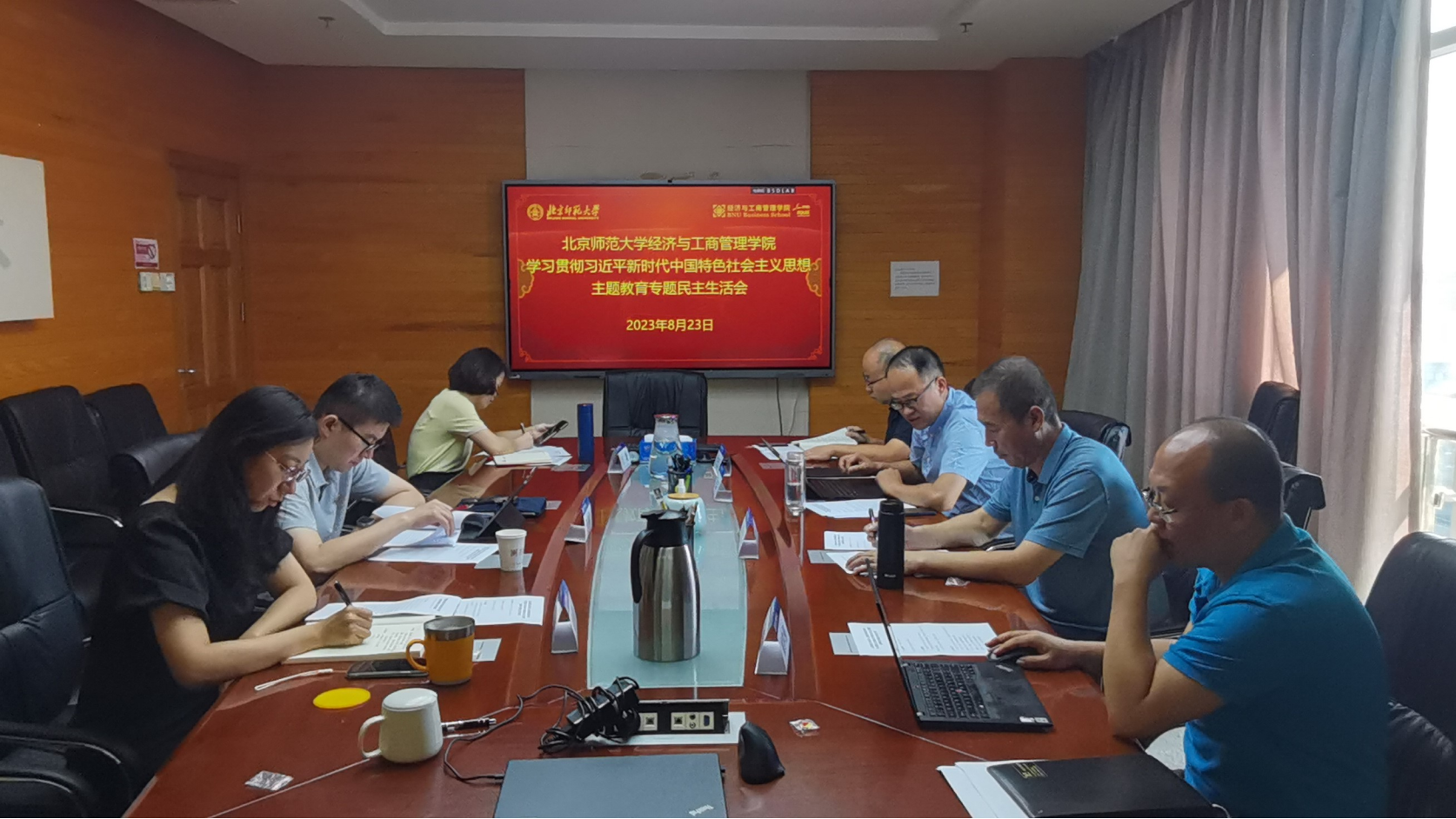 According to the instructions of the School Party committee, on the morning of August 23, 2023, the leadership team of BNUBS held a democratic life meeting on the theme of education in the conference room 1610 of the Rear Main Building. Leadership members attended the meeting. Yu Xiaolei, Minister of the Student Party Committee, Associate Leader of sixth supervision guidance group of theme education guided the meeting. The meeting was chaired by Sun Zhijun, Secretary of the Party Committee of the School.