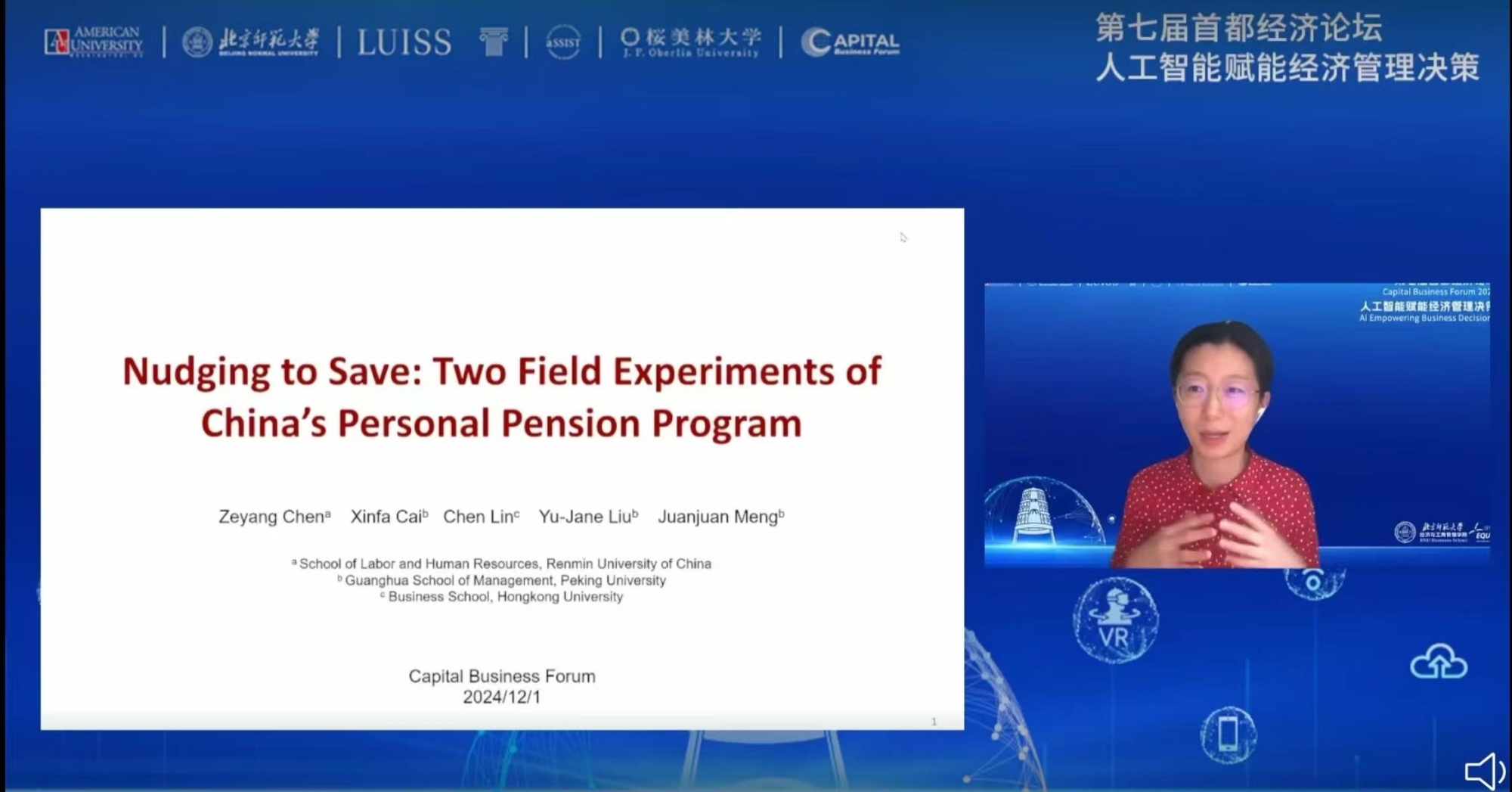 Chen Zeyang, an assistant professor of Renmin University of China, gave an introduction on China's aging population and pension system with the title of "Nudging to Save: Two Field Experience of China's Personal Pension Program". He pointed out that there is still a problem of "low participation" in China's pension system, but this is also a common challenge faced by voluntary pension plans worldwide.