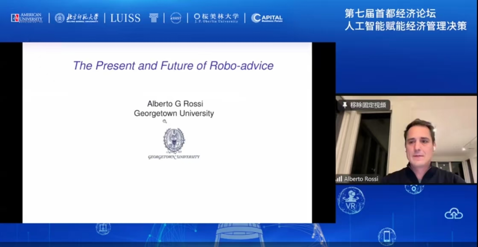 Alberto Rossi, a finance professor at Georgetown University Colorado School of Business in the United States, gave a presentation titled "The Present and Future of Robot-advice", focusing on the past, present, and future of robot investment advisors, as well as how advanced analytical techniques can solve problems in the financial field and decision-making processes.