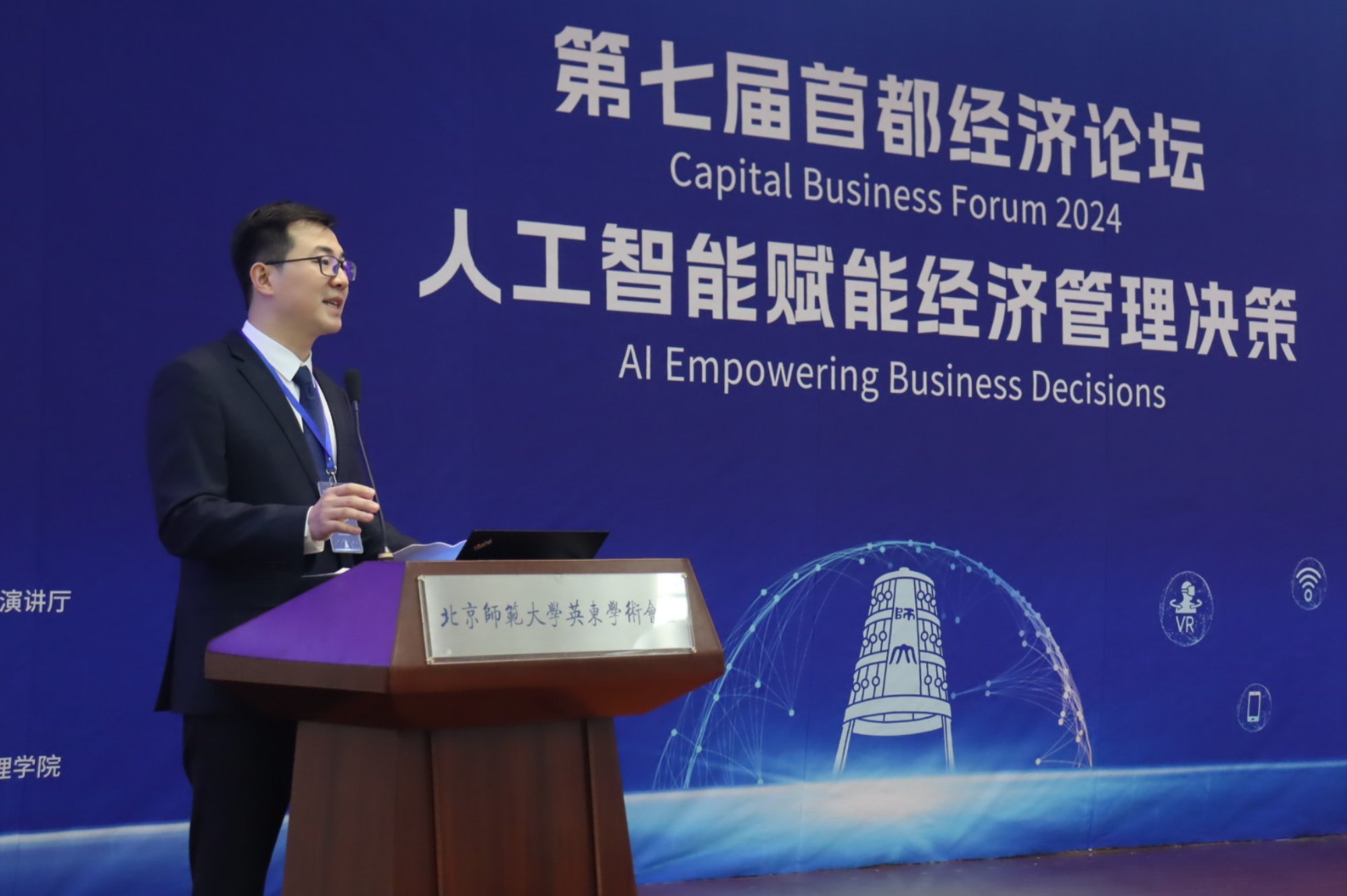 On December 1st, the 7th Capital Economic Forum was held, hosted by BNUBS. The theme of this forum is "Empowering Economic Management Decision Making with Artificial Intelligence". More than ten scholars and industry representatives from well-known universities in capital cities such as Beijing, Washington, Tokyo, London, Mumbai, etc. gave keynote speeches at the forum. The forum has a main offline venue in Beijing and a parallel venue on the ZOOM platform, attracting over 150000 viewers to participate online simultaneously.