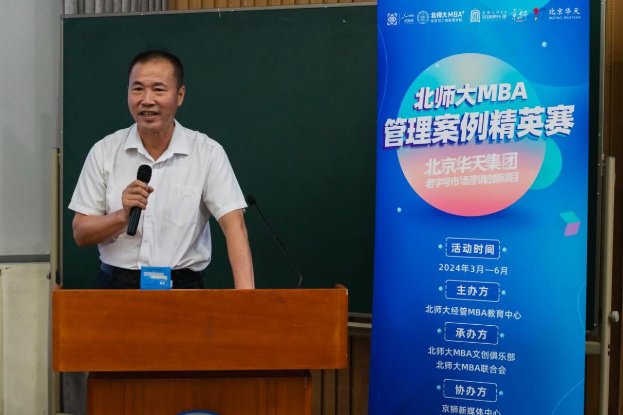 Before the final, Qi Yudong, Dean of BNUBS, and Jia Feiyue, president of Beijing Catering Industry Association, Party Secretary and chairman of Beijing Huatian Catering Holding Group Co., Ltd. delivered speeches for the event respectively.In his speech, Dean Qi Yudong congratulated the 10 teams that entered the final competition, and said that the MBA Management Case Elite Competition is almost a "real ammunition" business battle platform, and the participating teams can fully participate in the analysis and discussion of social and economic hot cases through the professional questions of the judges and the practical feedback of corporate guests during the competition, make strategic choices, master the art of management, and be familiar with the laws of the market. He hopes that in the final, he can not only see more comprehensive and detailed marketing plans of each team, but also transform what they have learned in the competition into their own ability and quality, but also establish deeper cooperative relations with enterprises through more ways to jointly promote the construction and development of marketing discipline.In his speech, President Jia Feiyue expressed his gratitude to the organization and planning of the MBA Education Center of BNUBS, and affirmed the achievements of the marketing programs completed by the participating teams. He said that participating in the Elite Competition of Management cases is a new attempt and exploration of campus cooperation and exchange of Beijing Huatian Group, and it also brings new ideas and horizons to the marketing communication of time-honored brands, and brings different inspiration and help to the innovation and development of enterprises.