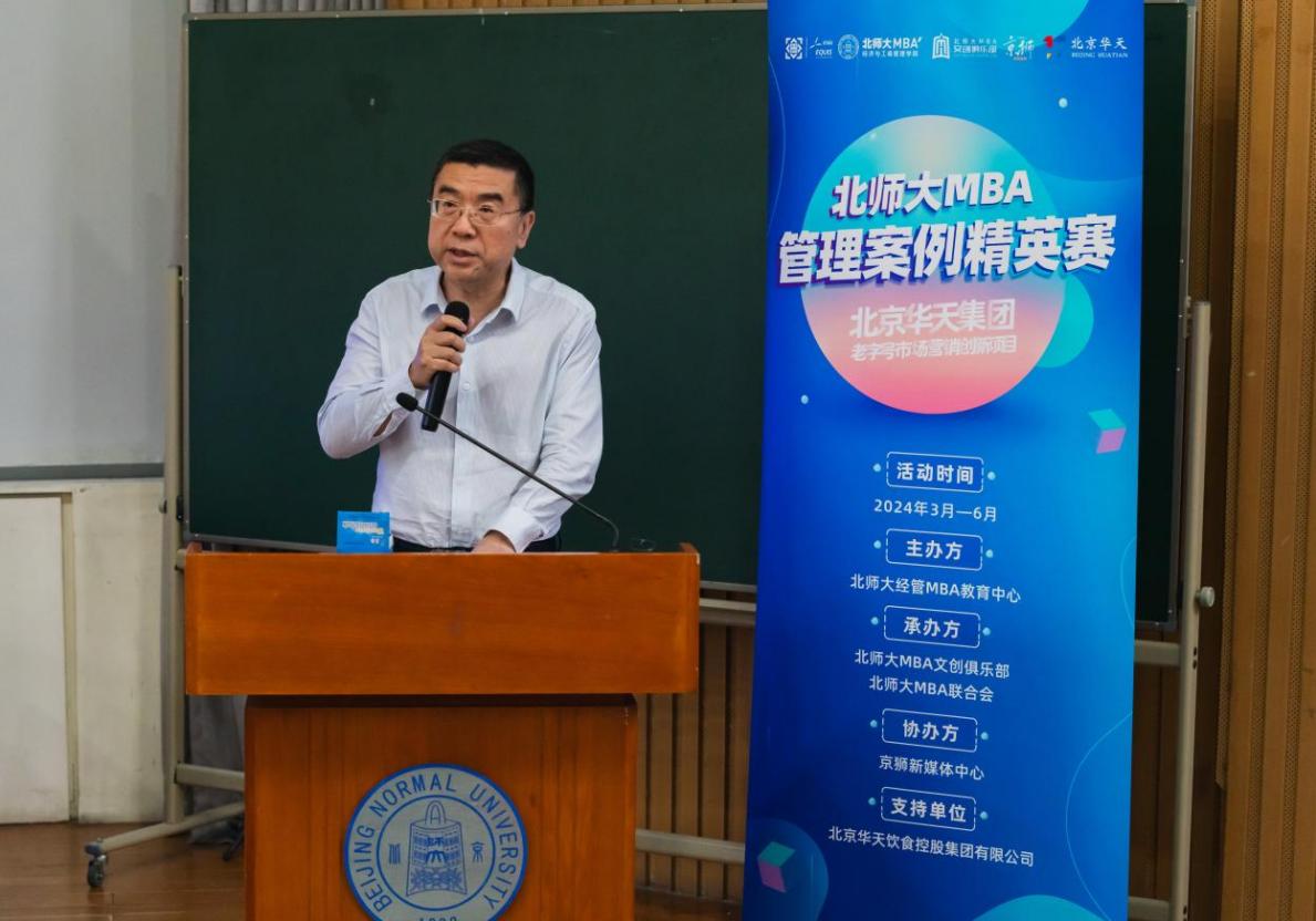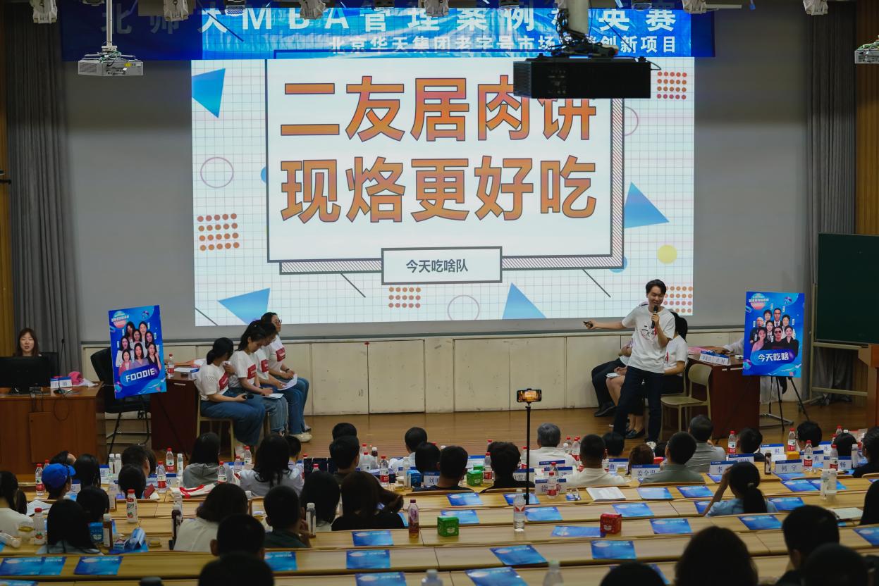 In order to fulfill the mission of BNUBS to "Promoting business and culture to serve the nation and the world by creating knowledge and developing talents.", further expand the brand influence of the MBA in BNUBS, and enhance the practical ability and innovative thinking of MBA students, BNUBS held the FinalMBA Management Case Elite Competition --- The Marketing Innovation Project of Beijing Huatian Catering Holding Group on June 2, 2024.The competition was organized by MBA Education Center of BNUBS, organized by MBA Association of Beijing Normal University, MBA Cultural and Creative Club of Beijing Normal University, co-organized by Jingshi New Media Center, supported by Beijing Huatian Catering Holding Group Co., LTD., sponsored by Minsheng Bank Deshengmen Branch and AIA Insurance. More than 200 students attended the course.