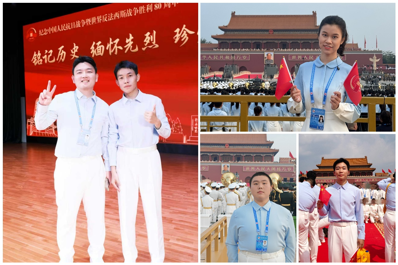 Five students from our School– Zeng Yizhi, Wang Yuheng, Xu Zixuan, Wang Rui, and Xu Haoran – participated in the square chorus throughout the entire process. With their youthful singing, they injected vibrant youth power into the commemorative conference. Six other students from our School – Shi Huiyi, Liu Changyu, Zhao Jiawen, Zhang Jingqi, Wang Xuanyin, and Gao Kai – took part in the square volunteer service team for the whole duration, providing professional and warm support services.
