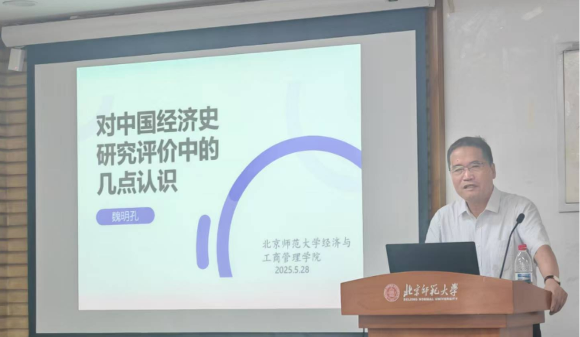 At 15:00 on May 28, 2025, the 153rd session of the "BNUBS Expert Forum" and the 2nd lecture of the "Economic History Forum" were grandly held in Room 9406 of Jingshi Building, hosted by BNUBS. The lecture specially invited Professor Wei Mingkong, a second-level researcher from the Institute of Economics of the Chinese Academy of Social Sciences and President of the China Economic History Society, as the keynote speaker. Hosted by Teacher Chen Yueyuan from the School, it attracted numerous faculty and students.