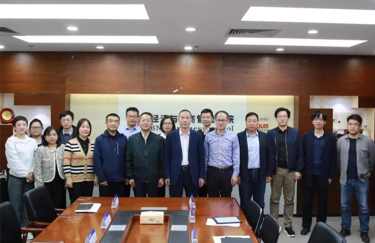 On the afternoon of April 20, Zhang Qiang, Party Secretary and chairman of the Asset Management Company, Wang Jun, full-time vice president of the company and other 11 people went to our School for exchange and discussion. Qi Yudong, Dean of BNUBS, Sun Zhijun, Secretary of the Party Committee of the School and the principal of the Department of relations, faculty representatives attended the symposium. Qi Yudong presided over the symposium.