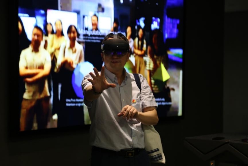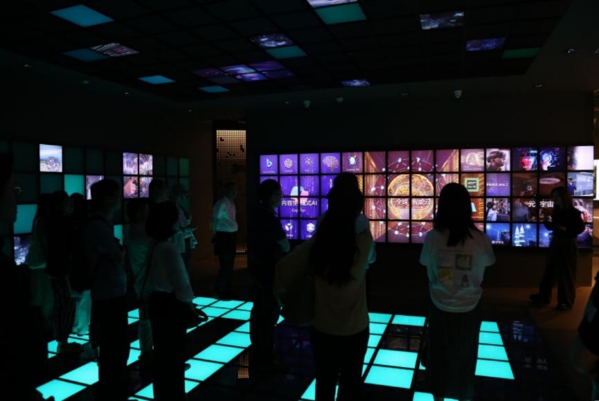 Finally, the docents led the teachers and students of the School to visit the Microsoft China Center One exhibition hall, and combined with the visual language displayed by the intelligent screen of the exhibition hall, introduced the cutting-edge technological breakthroughs made by Microsoft in recent years, and the industrial layout of the company in artificial intelligence, cloud computing and mixed reality.The exhibition hall has a number of creative interactive scenes, vividly showing the specific application of future technology, including that teachers and students interacted with ChatGPT Hudon voice and felt the powerful computing understanding of Microsoft's big language model in the creation of wonderful stories and human-computer questions and answers; Teachers and students experienced the latest technology of Microsoft speech synthesis, and brought the "Diary of a Madman" fragment recitation in multiple languages; In the process of trying on Microsoft's self-developed Hololens holographic glasses, teachers and students experienced the sense of technology combined with the virtual digital world and real life scenes. The exhibition hall took the intelligent building management of the headquarters building as an example, and displayed real-time information such as air quality and equipment operation through real-time monitoring and automatic analysis system to achieve sustainable operation and optimal environmental control.