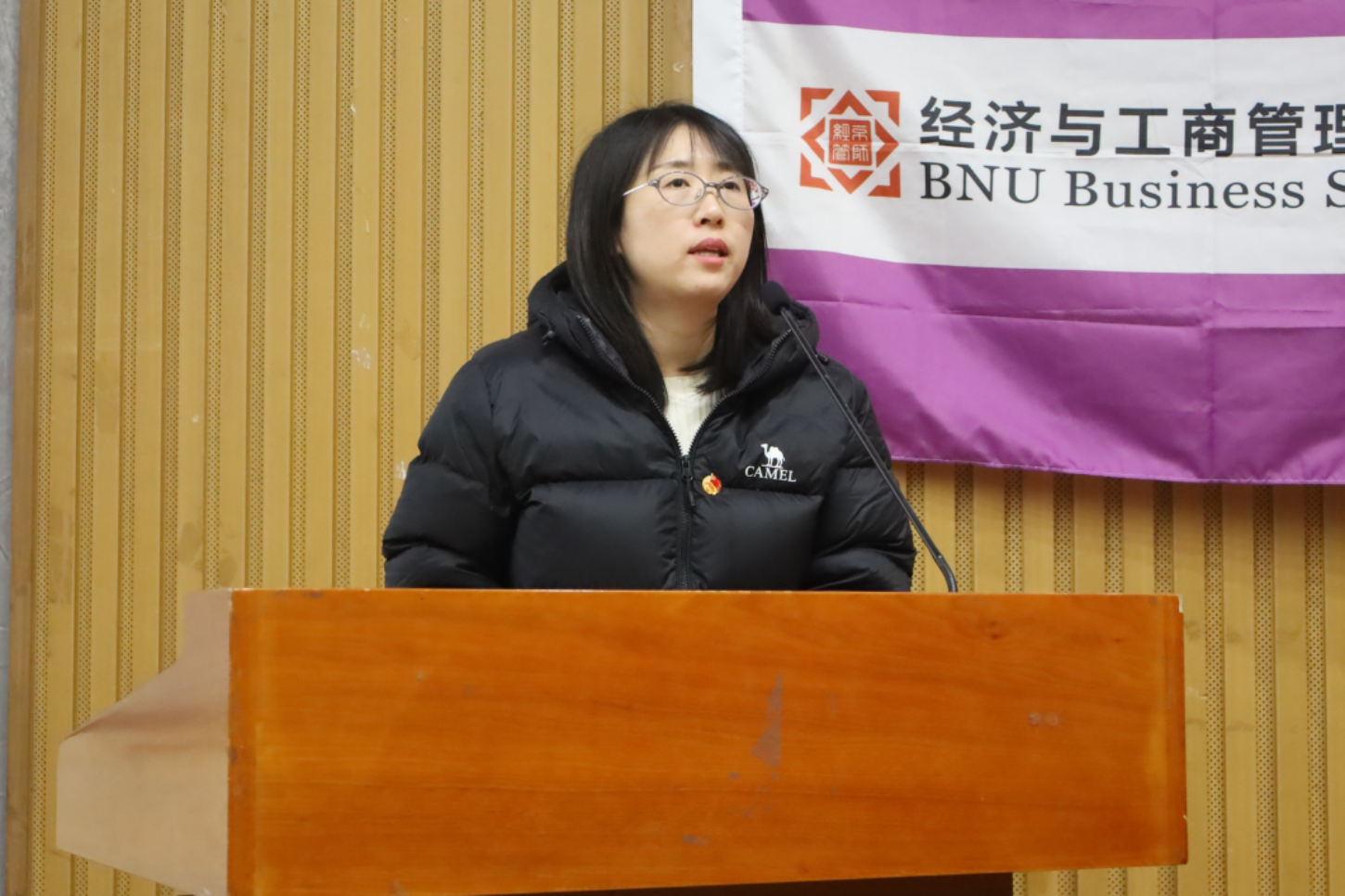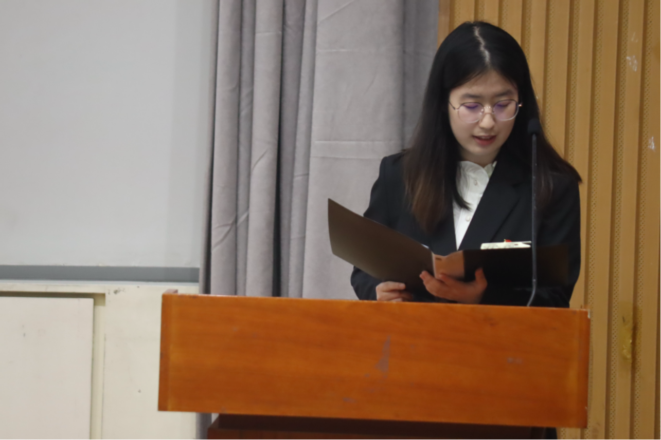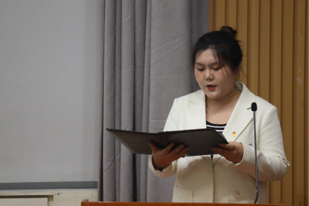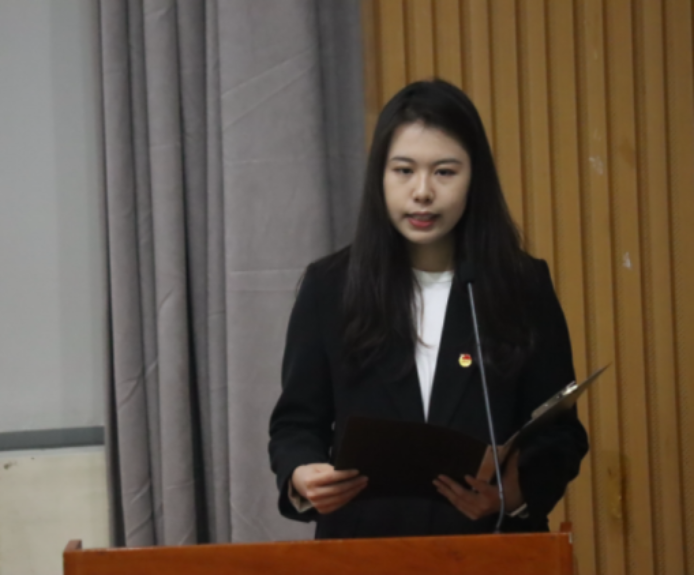 Che Bingjie,Member of the 39th Student Union Presidium presented a report on the qualification review of representatives for the 12th Representative Conference of the Communist Youth League School of BNUBS, the 40th Student Representative Conference of BNUBS, and the 13th Graduate Representative Conference.