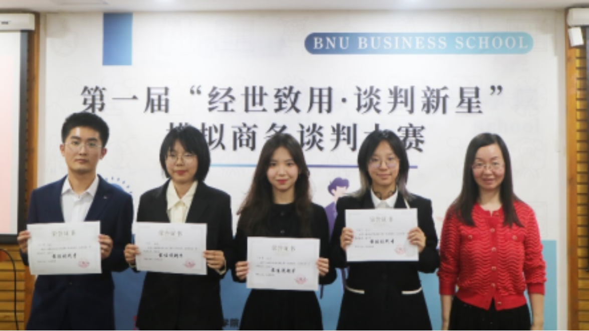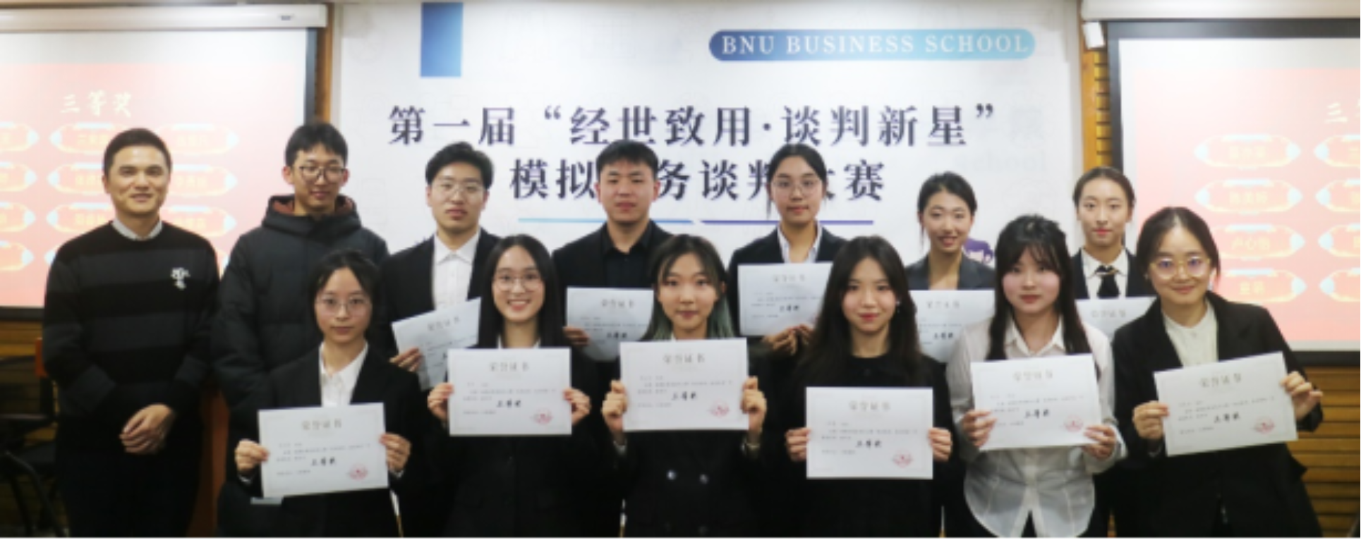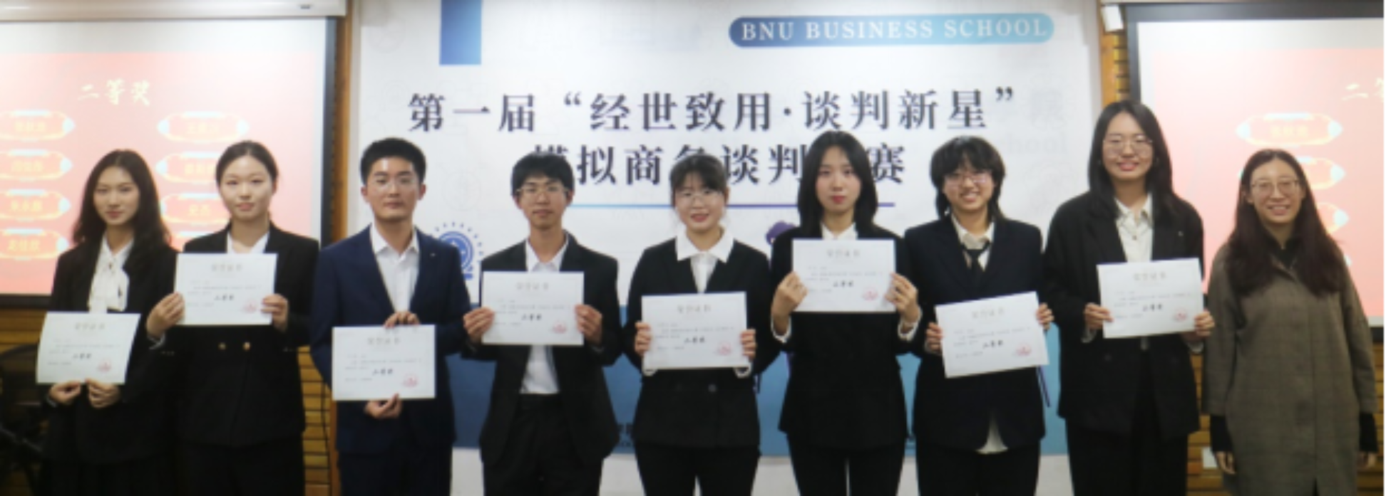 On November 30th, the final and award ceremony of the first "Business Promotion·New Negotiation Star" simulated business negotiation competition was successfully held in Conference Rooms 9406 and 9407 of the Jing Shi Building on the Haidian Campus of Beijing Normal University. This competition is hosted by BNUBS, organized by the School Youth League Committee and Student Union, and is open to all undergraduate and graduate students. This competition is another important innovative content of the Management Culture Festival, with extraordinary significance. It focuses on improving students' comprehensive quality and business negotiation skills. Through practical exercise, it aims to promote the deep integration of theory and practice, broaden students' horizons, build communication platforms, and help cultivate top-notch innovative talents in the School, empowering students to grow in all aspects.