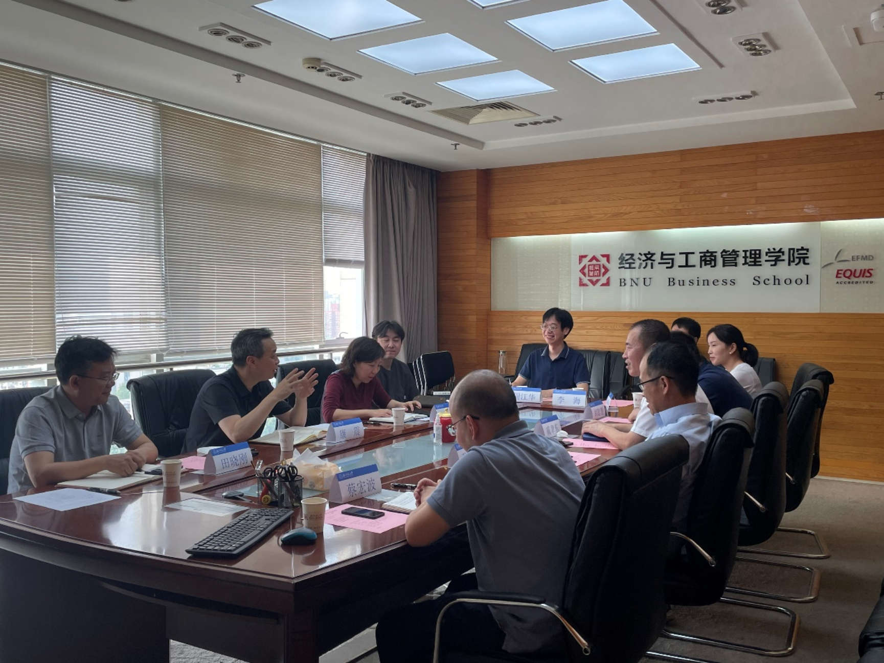 On the morning of May 10, 2024, in order to fully implement the development strategy of scientific research excellence proposed by the 14th Party Congress of Beijing Normal University, Kang Zhen, vice president of the Party Committee of Beijing Normal University, Sun Yu, vice president of the Research Institute and director of the Social Sciences Division, and two other people visited our School for research and exchange. Dean Qi Yudong, Party Secretary Sun Zhijun, Associate Dean Cai Hongbo and faculty representatives attended the research symposium.