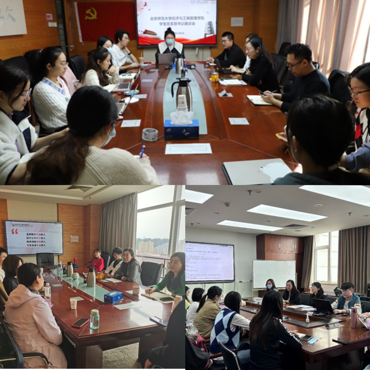 In order to implement the study and implementation of the theme education of Xi Jinping Thought on socialism with Chinese characteristics in the new era, comprehensively and deeply connect with students, steadily promote the effectiveness of students' ideological and political education work, and promote the construction of the college's "handling immediately after receiving a complaint" and "handling first before filing a complaint" work, BNUBS held a series of student representative symposiums for different student groups, including the student Party Branch Secretary symposium, the student representative symposium from poor families, the class monitor work symposium and the League branch secretary work symposium, etc. Ms. Han Lili, Associate Secretary of the Party Committee of the School, and the instructors responsible for related work attended the symposium.