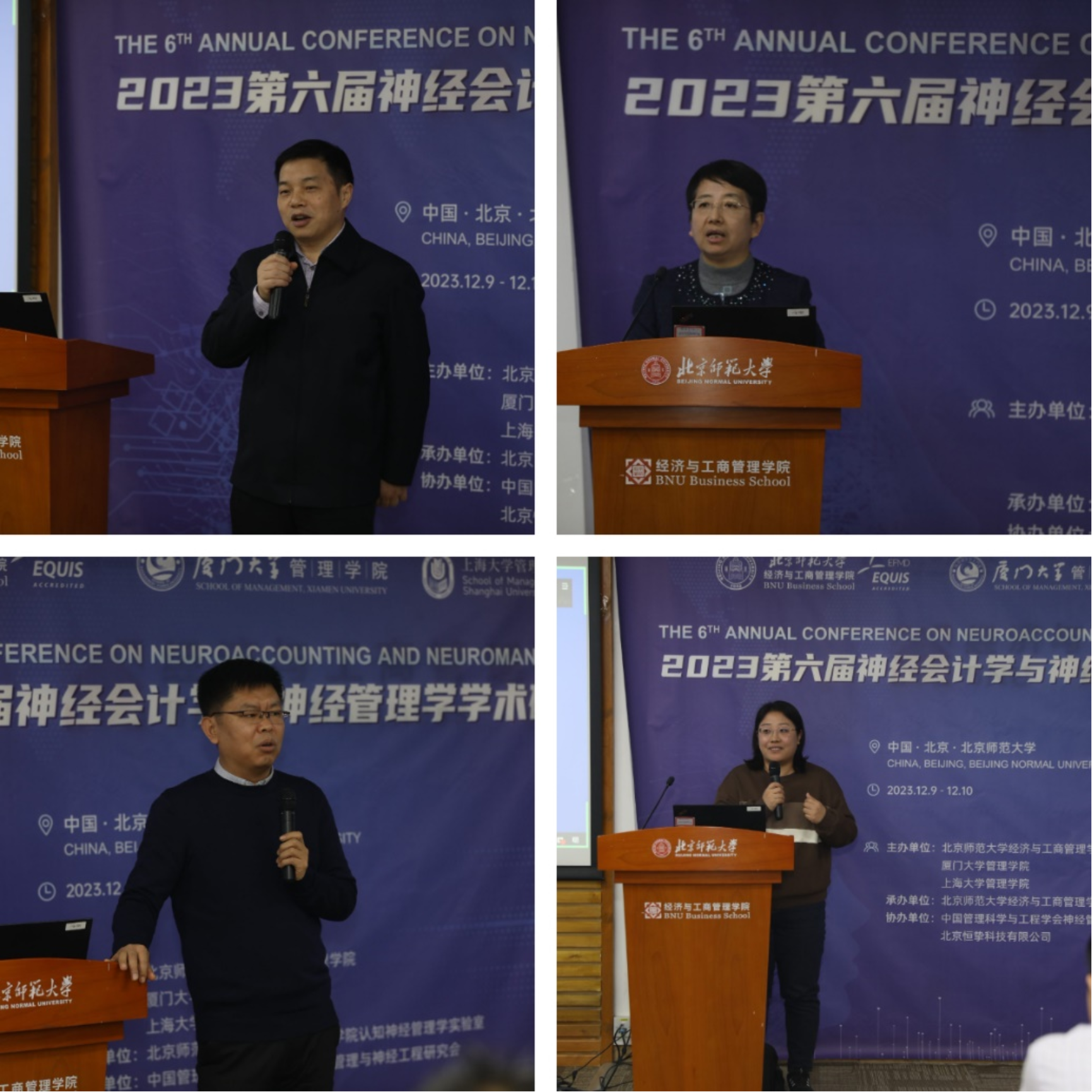 In order to promote the research development and theoretical innovation of Neuroaccounting and Neuromanagement, the sixth Academic Seminar on Neuroaccounting and Neuromanagement was held in 9406 JINGSHI HOTEL from December 9 to 10, 2023, with the theme of “Organizational Value Creation And Mechanism of Neuroaccounting And Neuromanagement in the Age of Data Intelligence”. The conference was co-sponsored by BNUBS, the School of Management of Xiamen University and the School of Management of Shanghai University. It was organized by the Cognitive Neuromanagement Laboratory of the School of Economics and Business Administration of Beijing Normal University, and co-organized by the Neuromanagement and Neuroengineering Research Institute of the Chinese Society of Management Science and Engineering and Beijing Hengzhi Technology Co., LTD. More than 100 representatives from more than 20 universities at home and abroad, including Kennesaw State University, National University of Singapore, Beijing Normal University, Fudan University, Xiamen University, Shandong University, Shanghai University, Renmin University of China, Shanghai International Studies University, Central University of Finance and Economics, Liaoning University and Northwestern Polytechnical University, attended the conference.