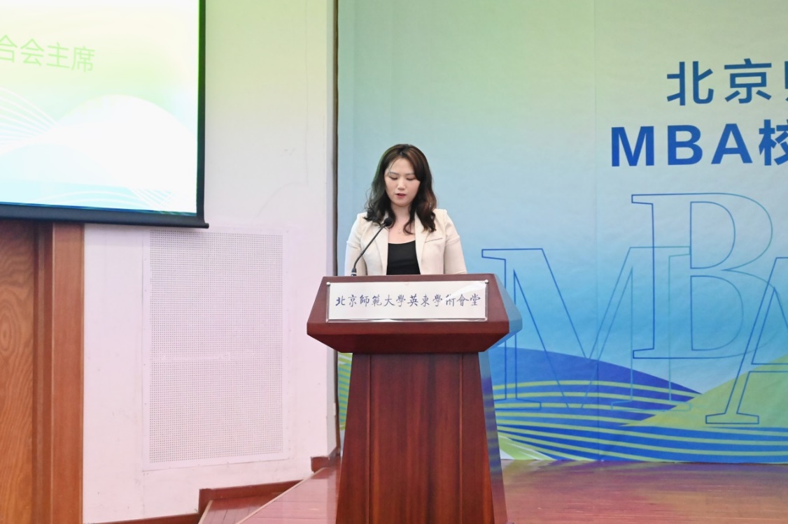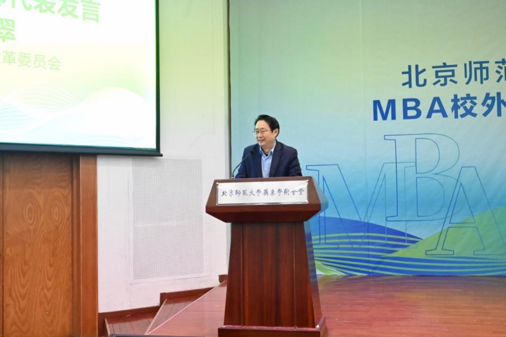 Li Sihan, the president of the 14th MBA Association of Beijing Normal University, delivered a speech as the student representative. She said that the double tutorial system is an important link in the MBA teaching and training of Beijing Normal University. The off-campus tutor guidance system can improve students' practical operation ability, solve their shortcomings in combining theory with practice, and increase their practical cognitive ability. Besides, a deep understanding of enterprise operation and industry development laws and other aspects have brought a lot of support and help.