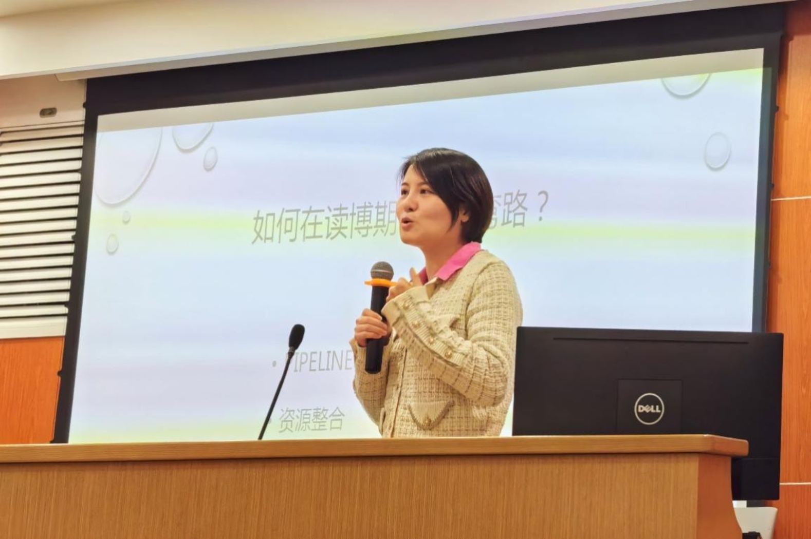 Teacher Wang Xue shared her study, job - hunting, and research experiences with the teachers and students present. She put forward three suggestions to the doctoral students, namely "establishing a reasonable work process", "integrating resources", and "forging a strong mentality", using specific and vivid examples. Combining her own experiences of submitting papers and getting them published, Teacher Wang Xue said that whether it is writing or job - hunting, one should make early preparations. Teacher Wang's humorous metaphors resonated with the students present, leading to frequent interactions and a warm atmosphere at the scene.