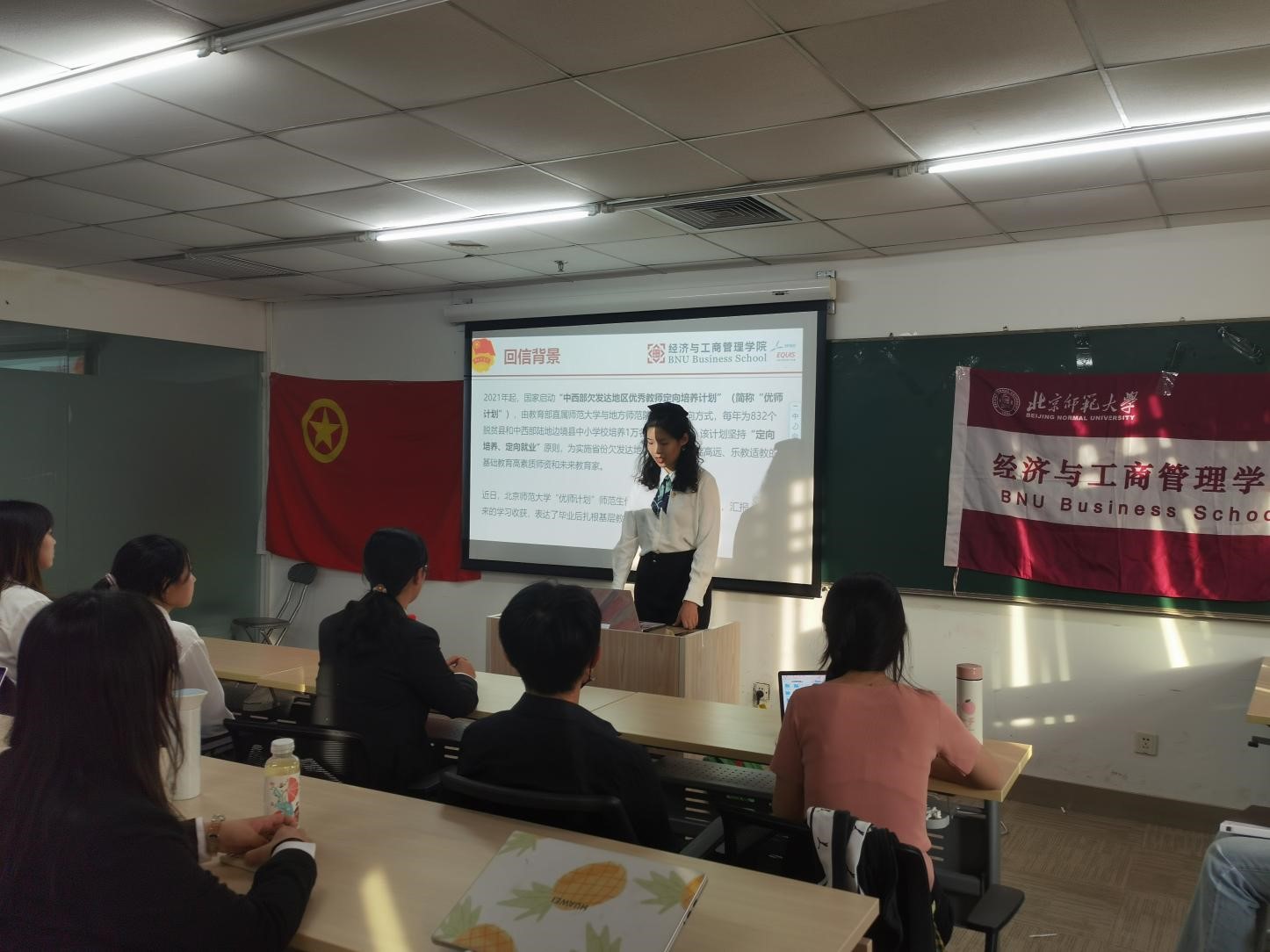 2022年9月24日,bat365中文官方网站团委、学生会以及研究生会成员共聚京师大厦9407。在这里,我们共同学习习近平总书记给bat365中文官方网站“优师计划”师范生的回信,聆听总书记的谆谆教诲,坚定理想信念;共同回溯李大钊先生、鲁迅先生和宋庆龄女士那波澜壮阔的一生,感受那片铁血丹心。