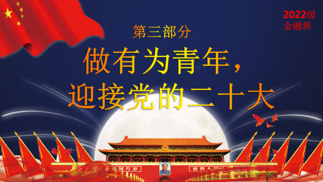 奋进新征程,建功新时代。为迎接党的二十大的胜利召开,2022年10月14日,bat365中文官方网站2022级金融团支部举办“喜迎二十大,永远跟党走”主题教育活动。本次活动由团支部书记钟艺媛同学主持,全体同学参加。