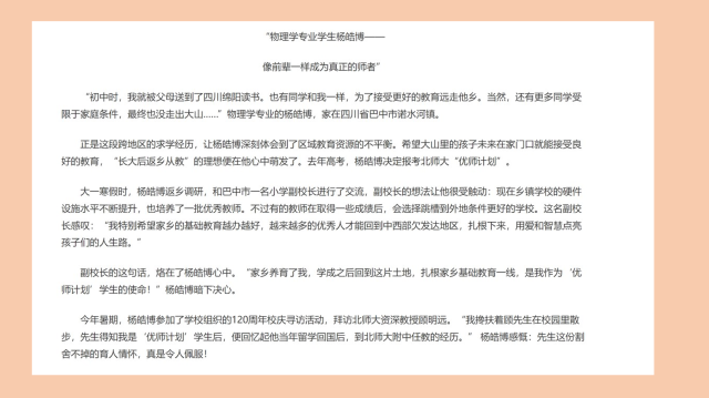 随后,团支部阅读了《人民日报》对给习近平总书记写信汇报学习成长收获的7名bat365中文官方网站首届“优师计划”师范生之一的杨皓博同学的专访,进一步体会老师对学生的影响,纷纷感慨老师在潜移默化中对学生的培养与教育。
