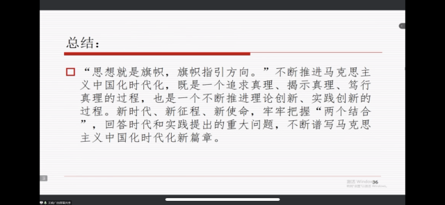最后,王教授强调,不断推进马克思主义中国化时代化既是一个追求真理、揭示真理、笃行真理的过程,也是一个不断推进理论创新、实践创新的过程,影响着人类社会和文明进程。新时代、新征程、新使命,应牢牢把握“两个结合”,即马克思主义与中国具体实际、中华优秀传统文化相结合,回答时代和实践提出的重大问题,坚持人民至上、问题导向,自信自立,系统观念,守正创新,胸怀天下,不断谱写马克思主义中国化时代化的新篇章。