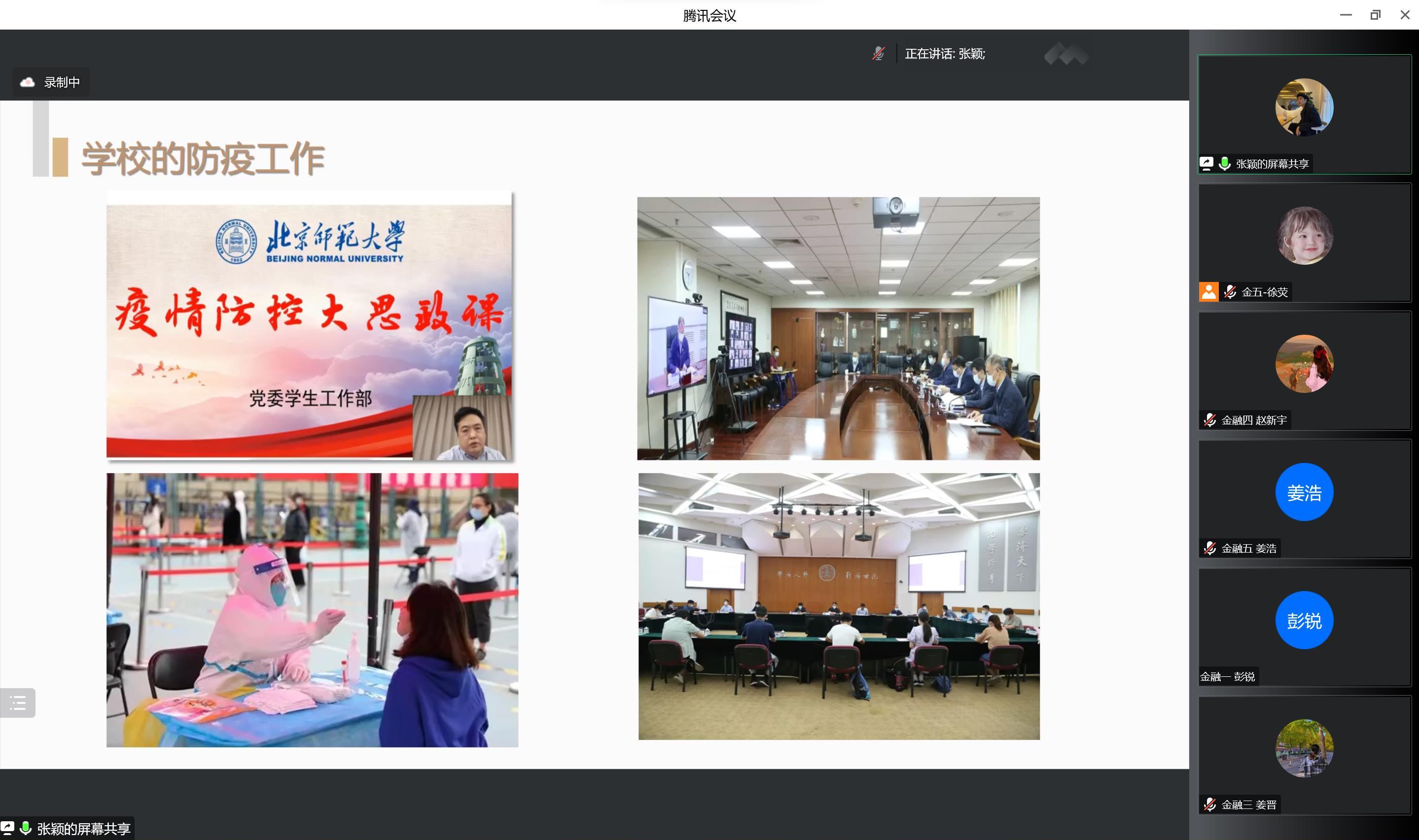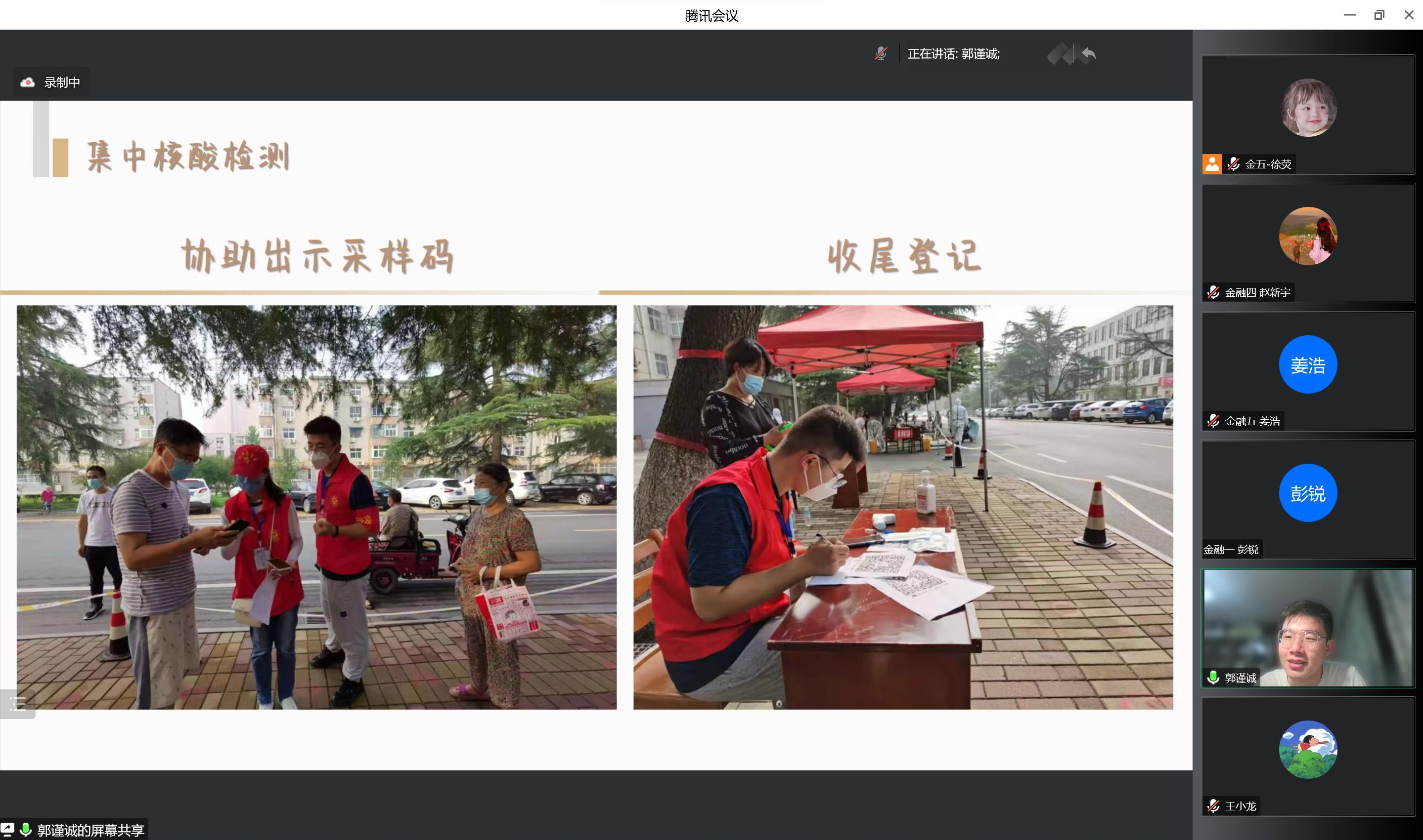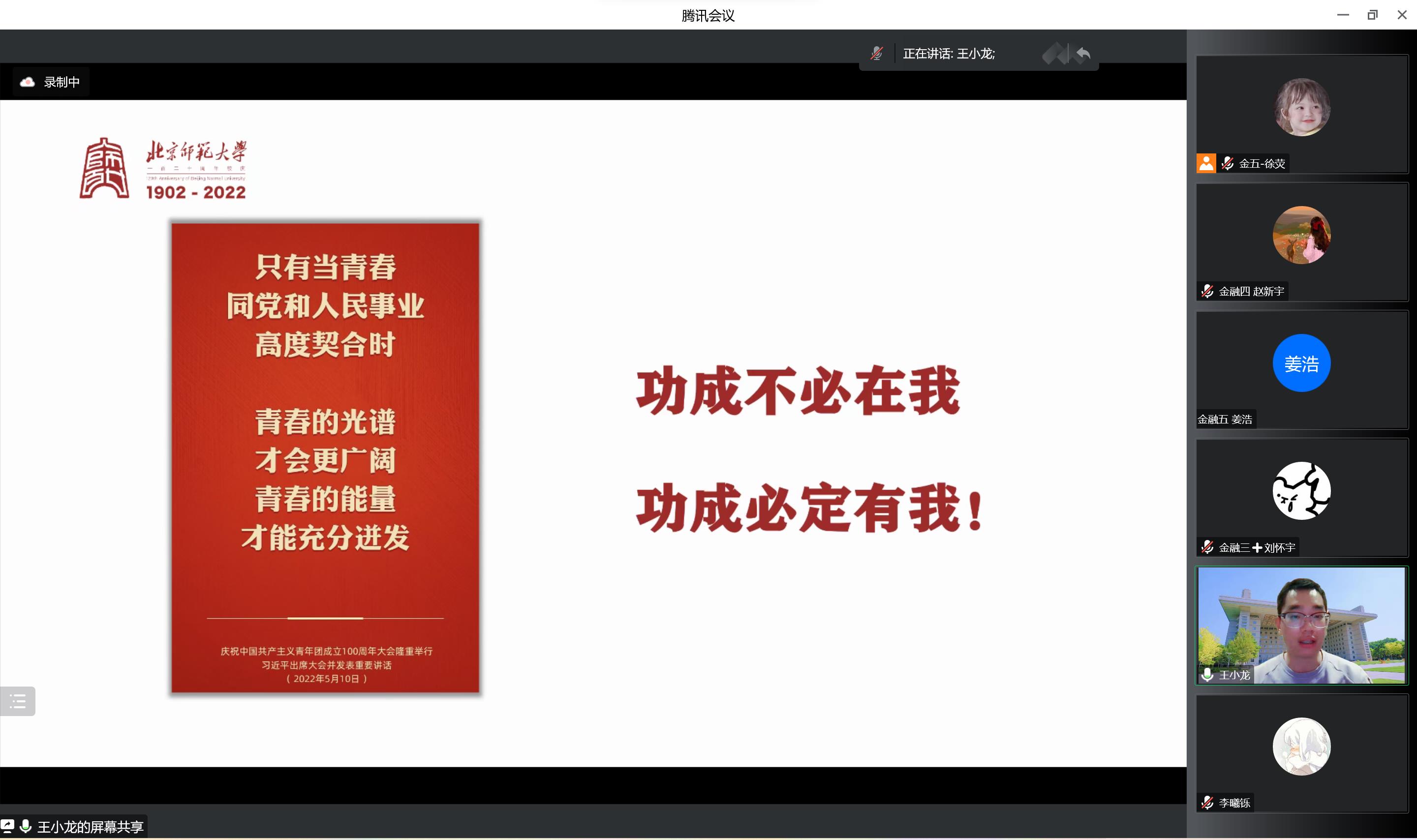 2022年10月15日,bat365中文官方网站金融学全体党支部通过腾讯会议线上平台联合召开“喜迎二十大,永远跟党走”主题宣传教育活动。通过云端支部共建,一起聆听“奋斗的青春”疫情下青年大学生优秀事迹宣讲。本次活动由金融学第四党支部书记赵新宇主持,参会正式党员、预备党员和入党积极分子共计102人。
