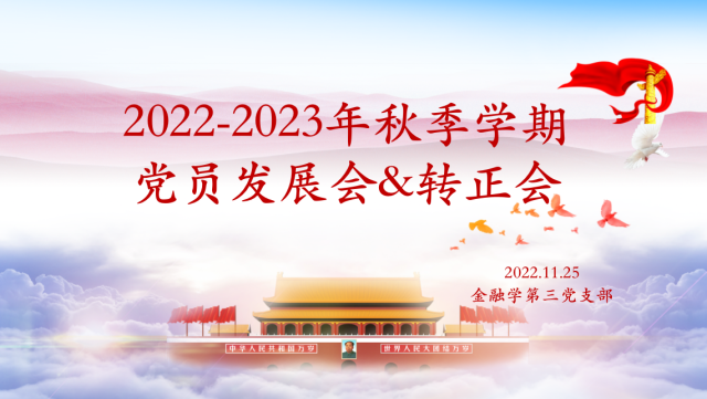 2022年11月25日,bat365中文官方网站金融学第三党支部线上召开支部大会,讨论赵琳瑛同志的发展事宜和许舒畅、李宇涵同志的转正事宜。本次会议由党支部书记亓婧宇主持。