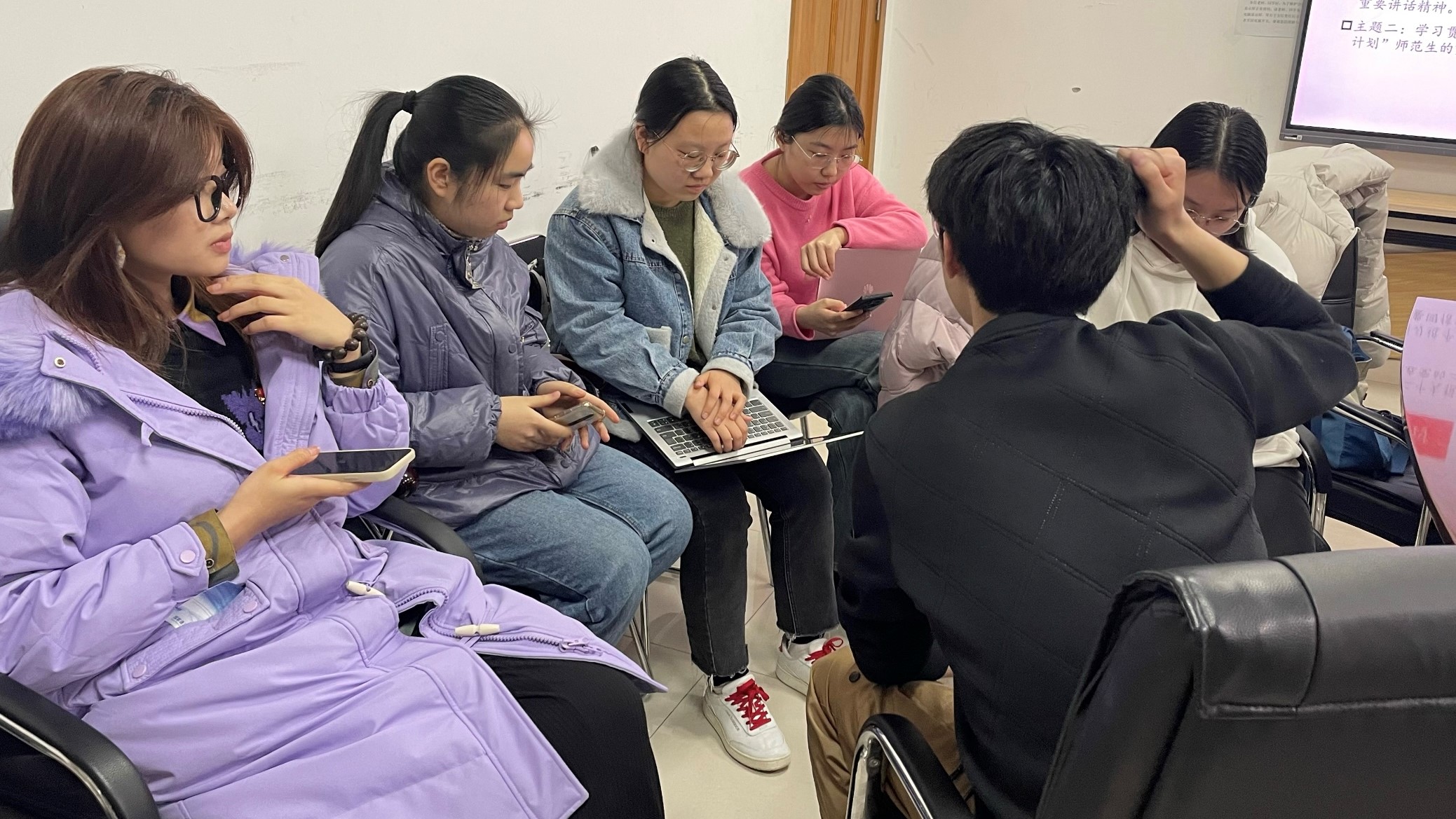 首先,徐荧介绍了本次组织生活会的专题学习主题,开展以小组为形式的学习研讨。第一组的成员有姜浩、熊胤廷、杨笑鸣、王琢琬、李颖、杨志琴,学习主题为党的二十大报告和新修订党章;第二组的成员有曾笑萍、赵婧、卜宪微、柳钰莹、旷祎诺、闻田果,学习主题为习近平总书记重要回信精神。两组内部进行讨论交流,每位党员均结合个人经历分享了自己对理论内容与精神的学习感悟。