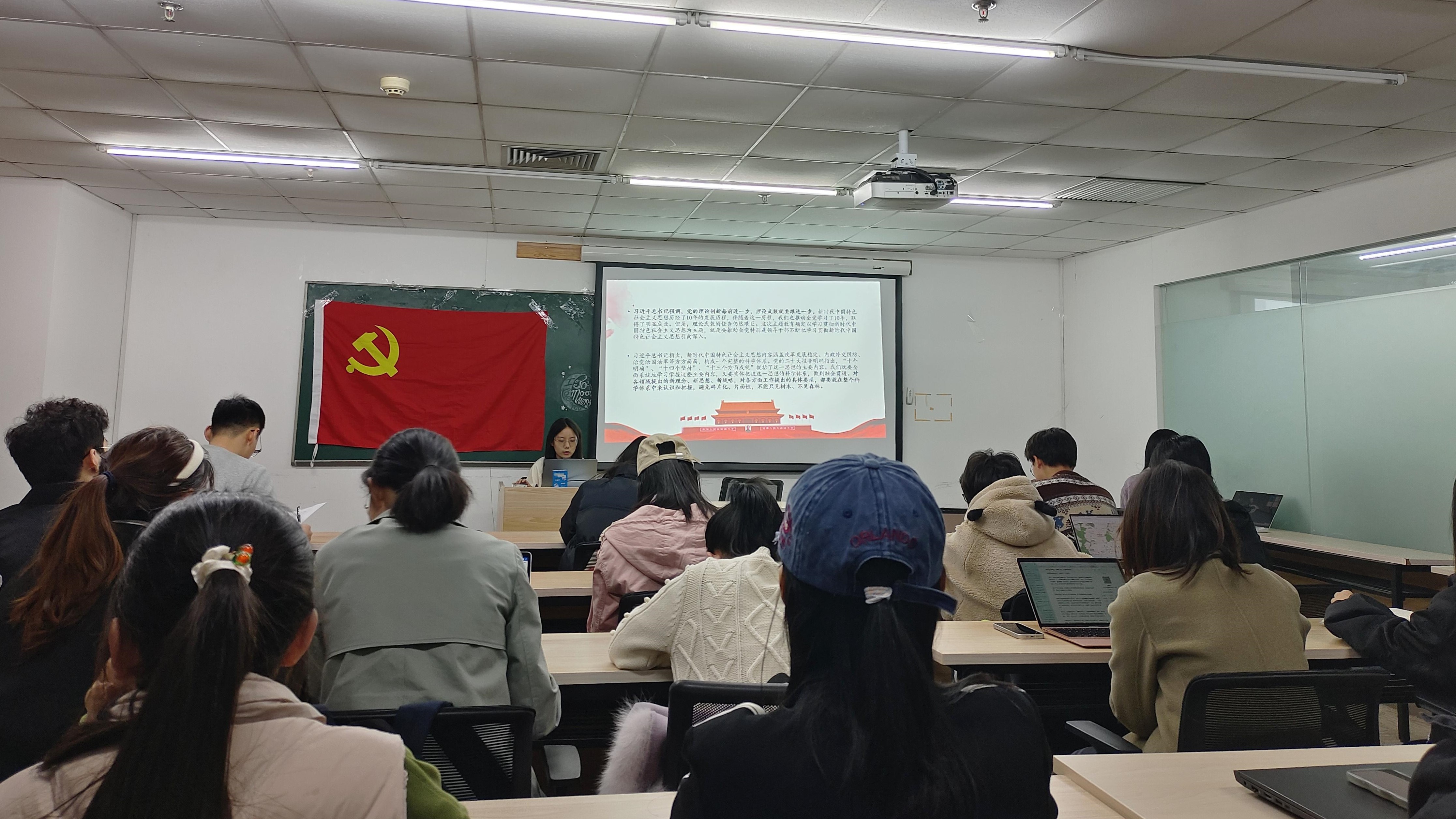 随后,薛潇同学带领支部成员学习了习近平总书记在中共中央政治局第四次集体学习中的重要讲话精神。习近平总书记的重要讲话,着眼新时代新征程党的中心任务,深刻阐述了主题教育的重大意义。他强调,学深悟透习近平新时代中国特色社会主义思想,必须把握这一思想的世界观、方法论和贯穿其中的立场观点方法。学习的目的在于运用,学习习近平新时代中国特色社会主义思想的目的在于把这一思想变成改造主观世界和客观世界的强大思想武器。要把党的创新理论运用到贯彻落实党的二十大提出的重大战略部署中去,善于运用习近平新时代中国特色社会主义思想观察时代、把握时代、引领时代。