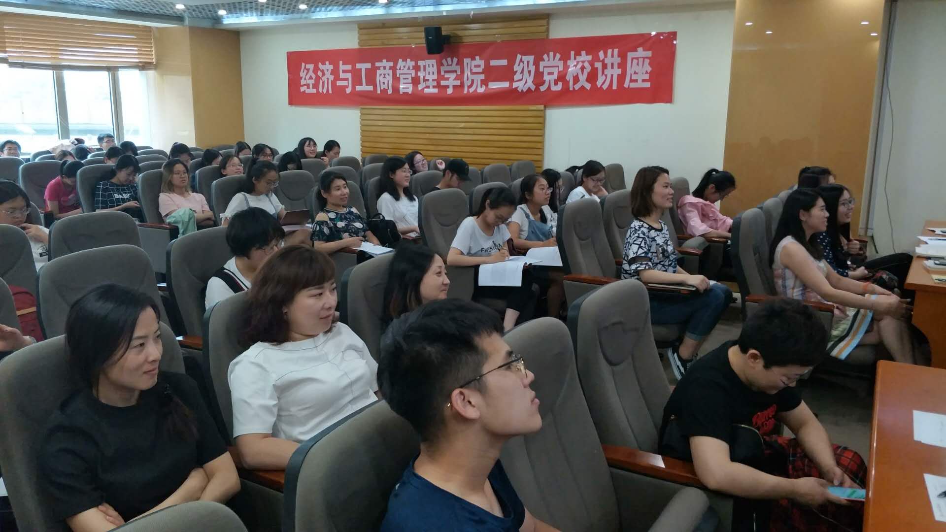 赵教授结合自身的工作经历和大量的影视作品,生动形象、幽默风趣地为在场学生阐述了道德、理念和信念这一话题,赢得在场学生的阵阵掌声。赵教授最后鼓励各位党员和入党积极分子要树立远大的社会理想,培养高尚的道德情操,积极学习党的理论知识,增强党性修养,为成为一名合格的共产党员不断努力。
