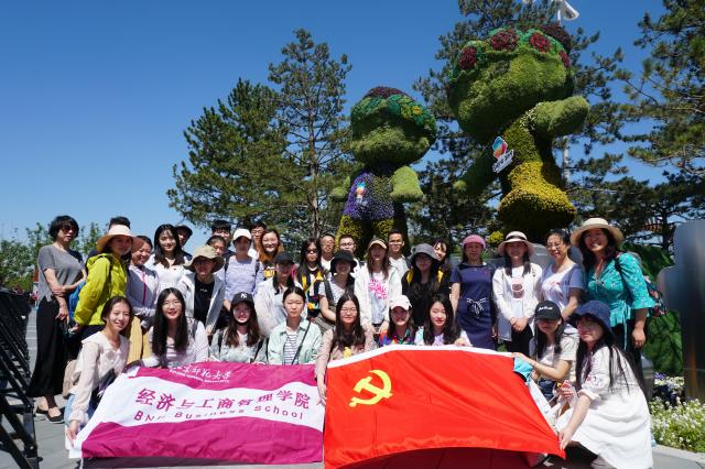 2019年5月28日,“砥砺爱国情,共筑中国梦”经管学院畅游2019年北京世界园艺博览会活动圆满举行。本次师生党支部共建活动由bat365中文官方网站教工行政党支部书记李瑛淑老师组织,来自教工行政党支部、教工工管党支部、教工国经党支部、本科生会计党支部、本科生国金党支部、本科生工管党支部、2017级和2018级硕士生党支部等党支部的近40名党员和入党积极分子参与了本次活动。本次活动旨在引导师生党员和入党积极分子深切感受“绿色”的新发展理念和人与自然和谐共生的生态观,通过领略祖国各地的园林艺术,增强“四个自信”,通过感受世界各国的园林文化,开拓国际视野。