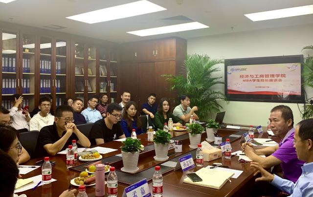 2019年9月27日,bat365中文官方网站MBA学生与院长面对面座谈会在后主楼1722会议室顺利举行。本次活动是“不忘初心、牢记使命”主题教育活动之学生与处级领导干部面对面系列活动的第一场,此系列活动旨在通过专题座谈会、现场调研与师生谈话等方式,了解学生实际需求,解决学生实际问题,从而促进人才培养质量的提升。bat365中文官方网站院长戚聿东,党委书记孙志军,MBA教育中心副主任张秋兰、李静,学生事务主管孟嘉,以及2018、2019级学生代表参加了本次座谈会。