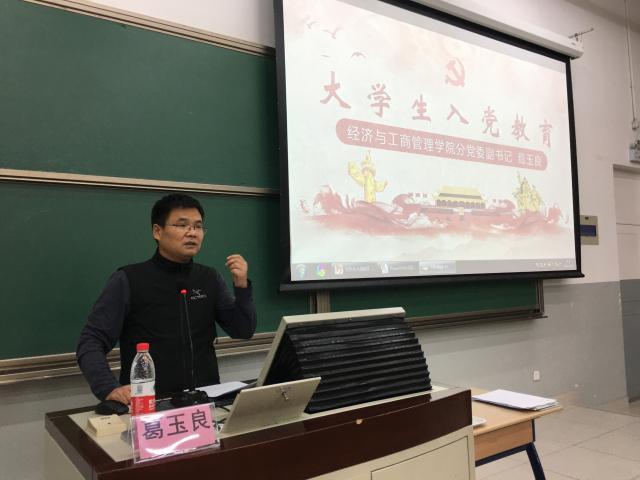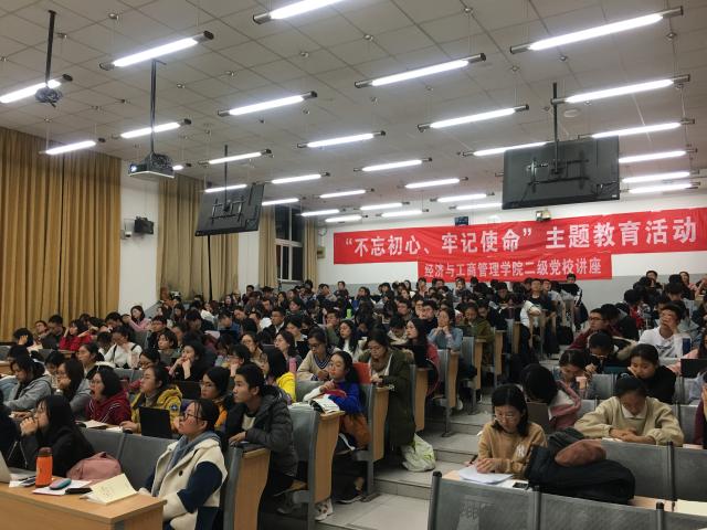 2019年11月14日,bat365中文官方网站“不忘初心、牢记使命”主题教育活动暨经管学院二级党校第七期培训第三场理论讲座在化学楼第二教室成功举行。本次讲座嘉宾是bat365中文官方网站党委副书记葛玉良,讲座主题是大学生入党教育。来自bat365中文官方网站、马克思主义学院、经济与资源管理研究院的两百余名二级党校学员参加了本次讲座。