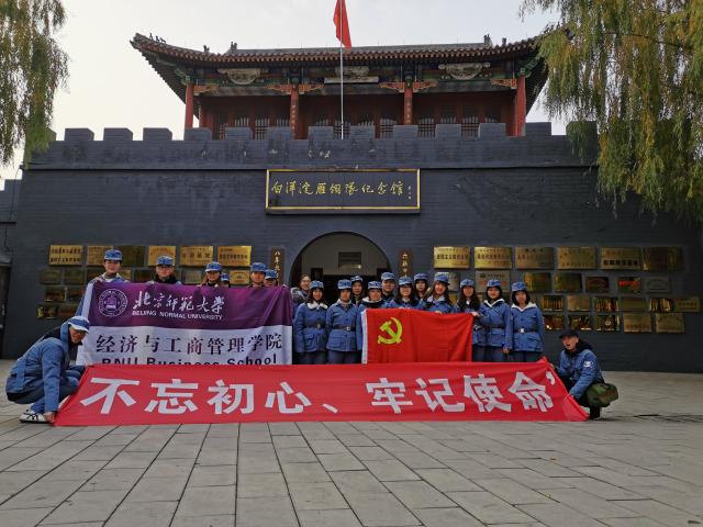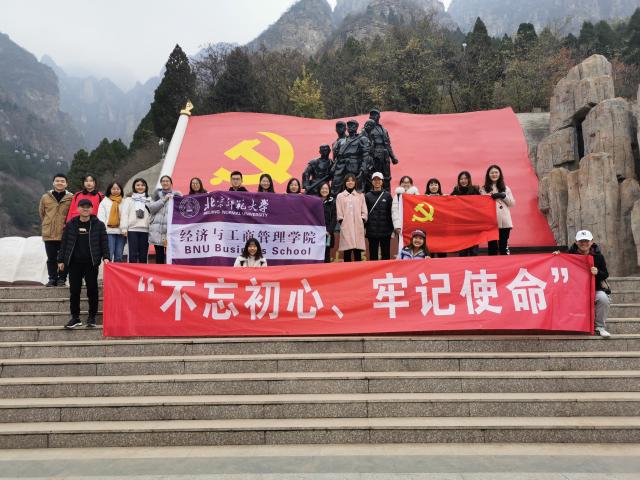 不忘初心,牢记使命;不忘历史,缅怀先烈。为庆祝新中国成立70周年,促使学生党员和入党积极分子增强“四个意识”,坚定“四个自信”,坚决做到“两个维护”,传承红色基因,彰显红色气质,bat365中文官方网站本科生经济党支部和会计党支部于2019年11月16−17日赴河北狼牙山、白洋淀、雄安新区开展“不忘初心、牢记使命”主题教育活动。13名党员和7名入党积极分子参加了本次实践活动。