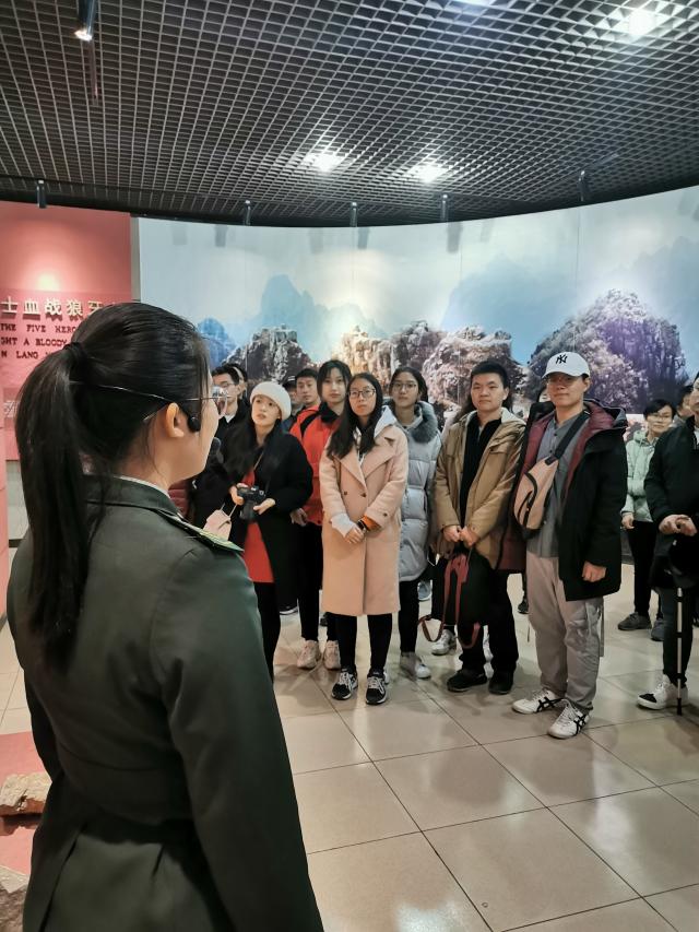 随后,同志们在讲解员的带领下参观了狼牙山五勇士陈列馆。在介绍五勇士马宝玉、葛振林、宋学义、胡德林、胡福才的个人经历和他们英勇牺牲的故事时,有的同学甚至激动地落下了眼泪。虽然纪念馆内参观者很多,但同学们都井然有序地聆听讲解,用心地观看墙壁上一张张老旧的革命照片。