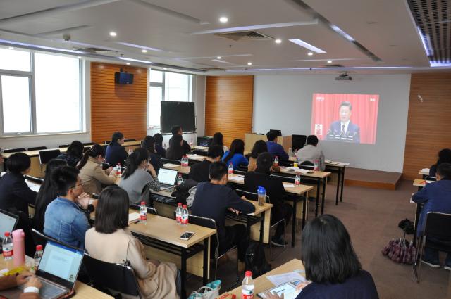 2017年10月18日,bat365中文官方网站党委委员、院务会成员、各师生党支部委员及部分党员代表,在后主楼1620共同观看中国共产党第十九次全国代表大会开幕会的现场直播。